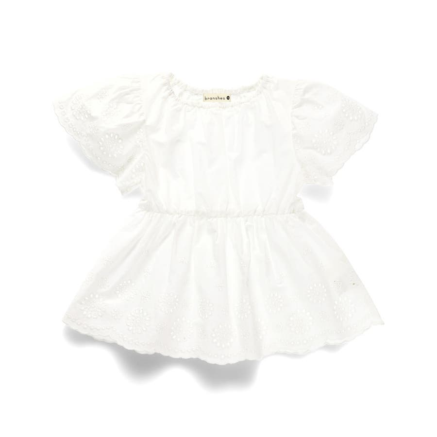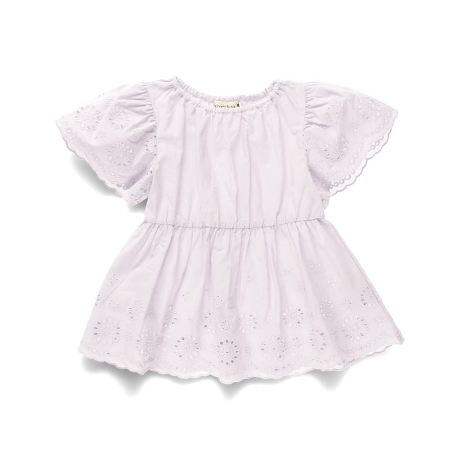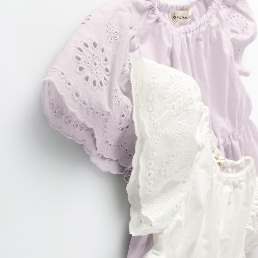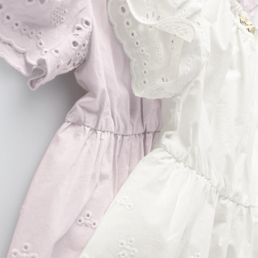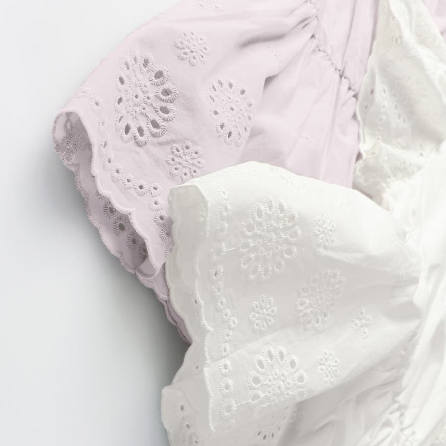 袖と裾にあしらったスカラップ刺繍がかわいいアクセント♪
