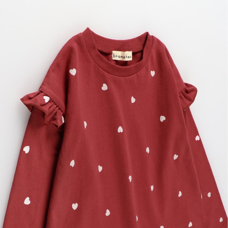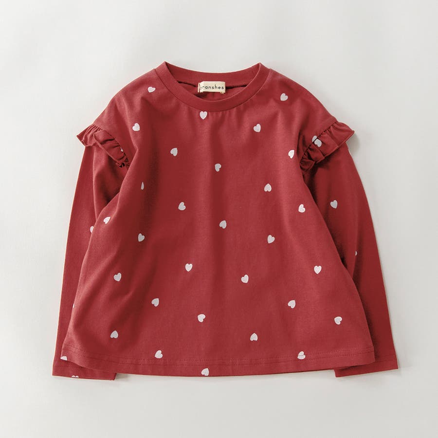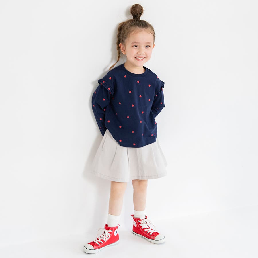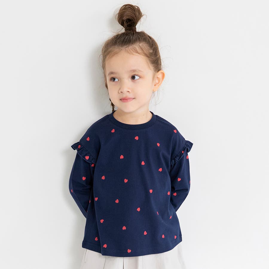全部にハートが散りばめられたデザインで肩にフリルがありめちゃくちゃ可愛いです。ブラックに赤のハートなので女の子らしく生地もしっかりしていて買って良かったです。