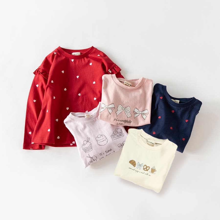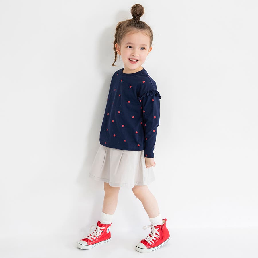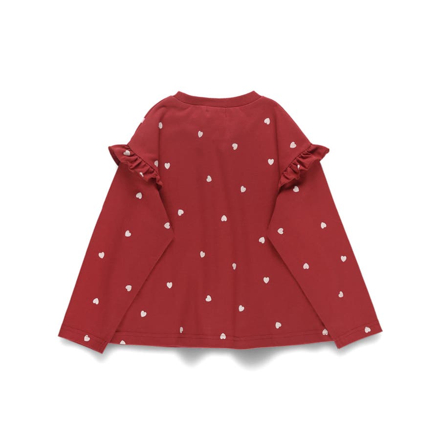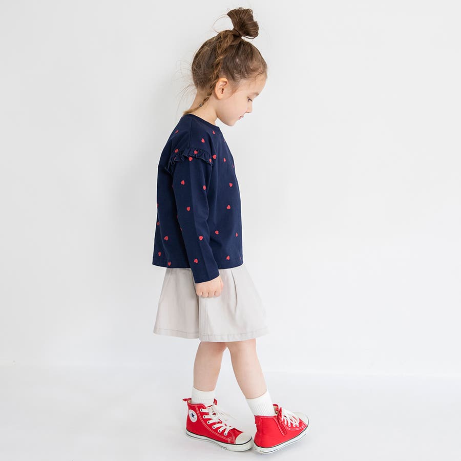 全部にハートが散りばめられたデザインで肩にフリルがありめちゃくちゃ可愛いです。ブラックに赤のハートなので女の子らしく生地もしっかりしていて買って良かったです。