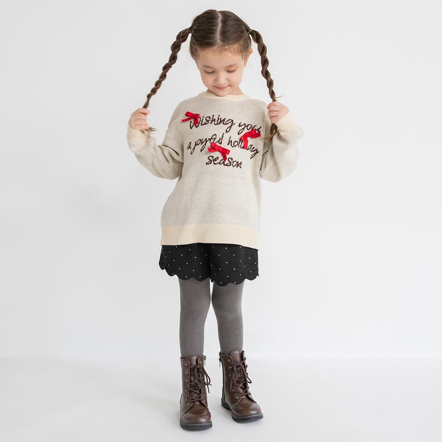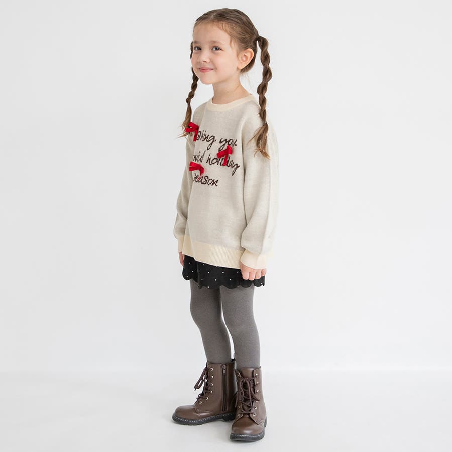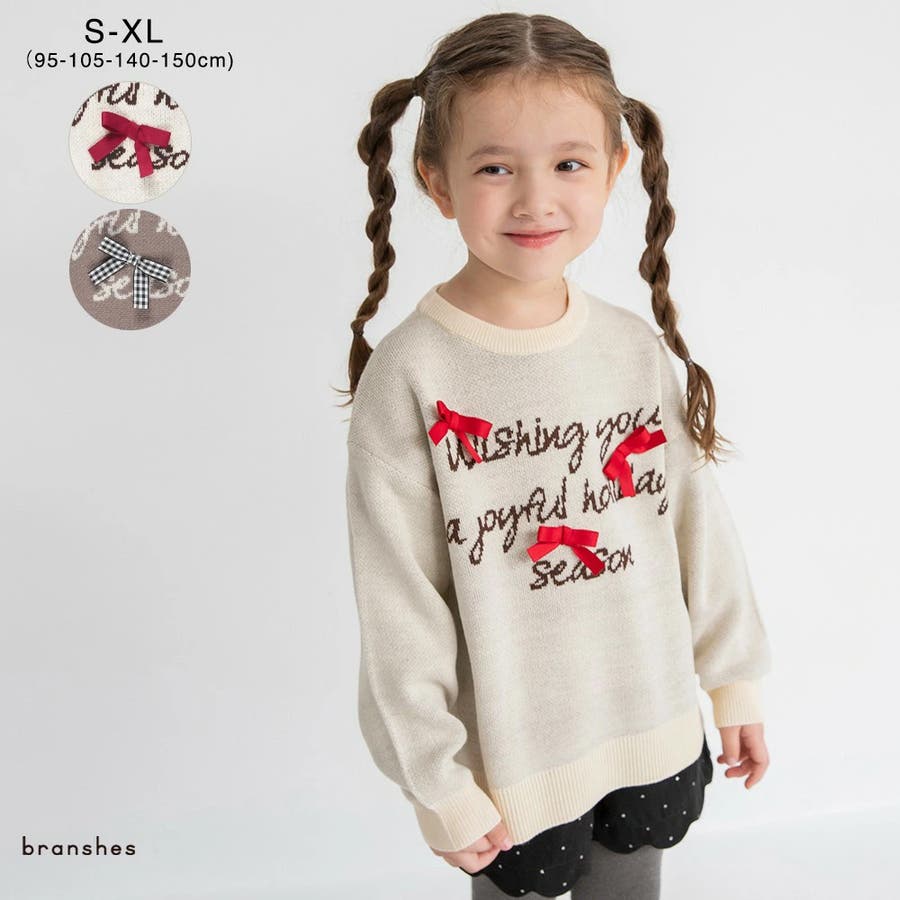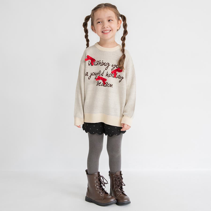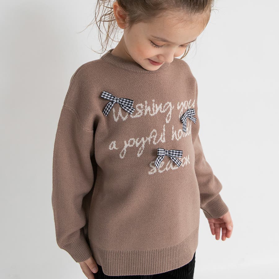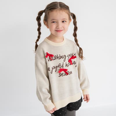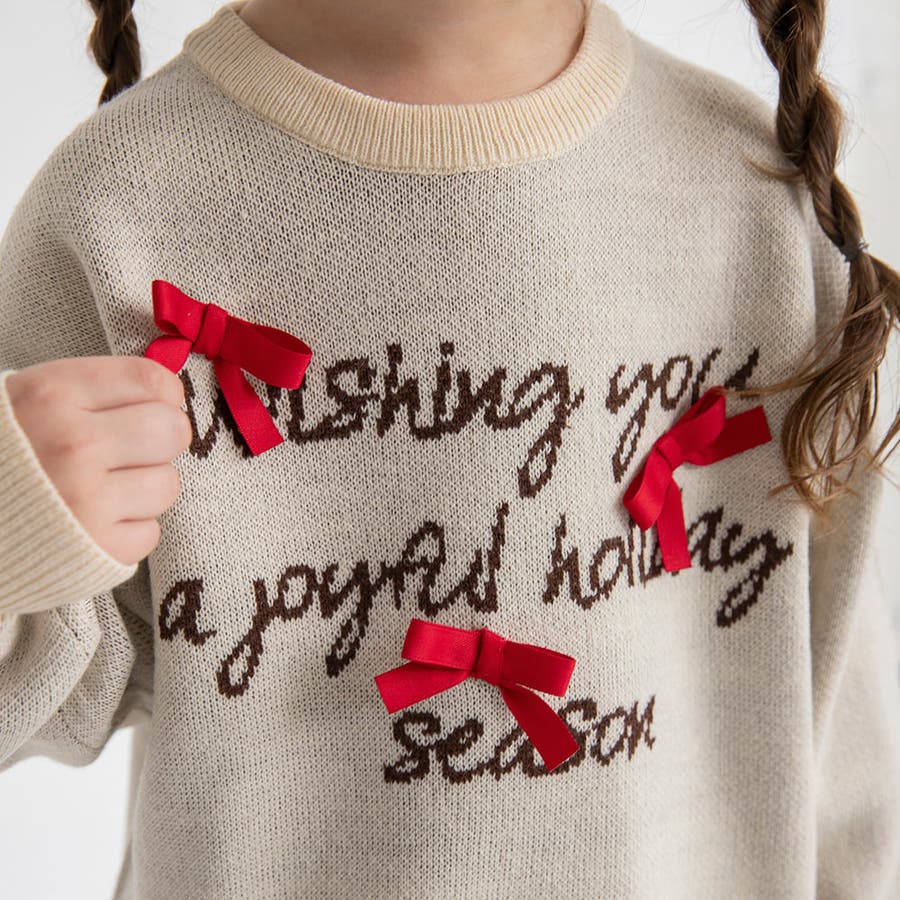 リボン モチーフロゴ ニット