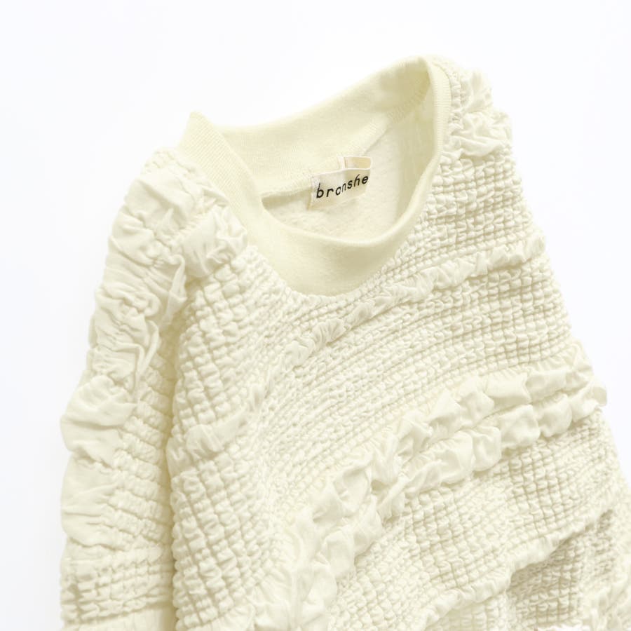 ポコポコと表面感のあるジャガード生地が特徴のトップス