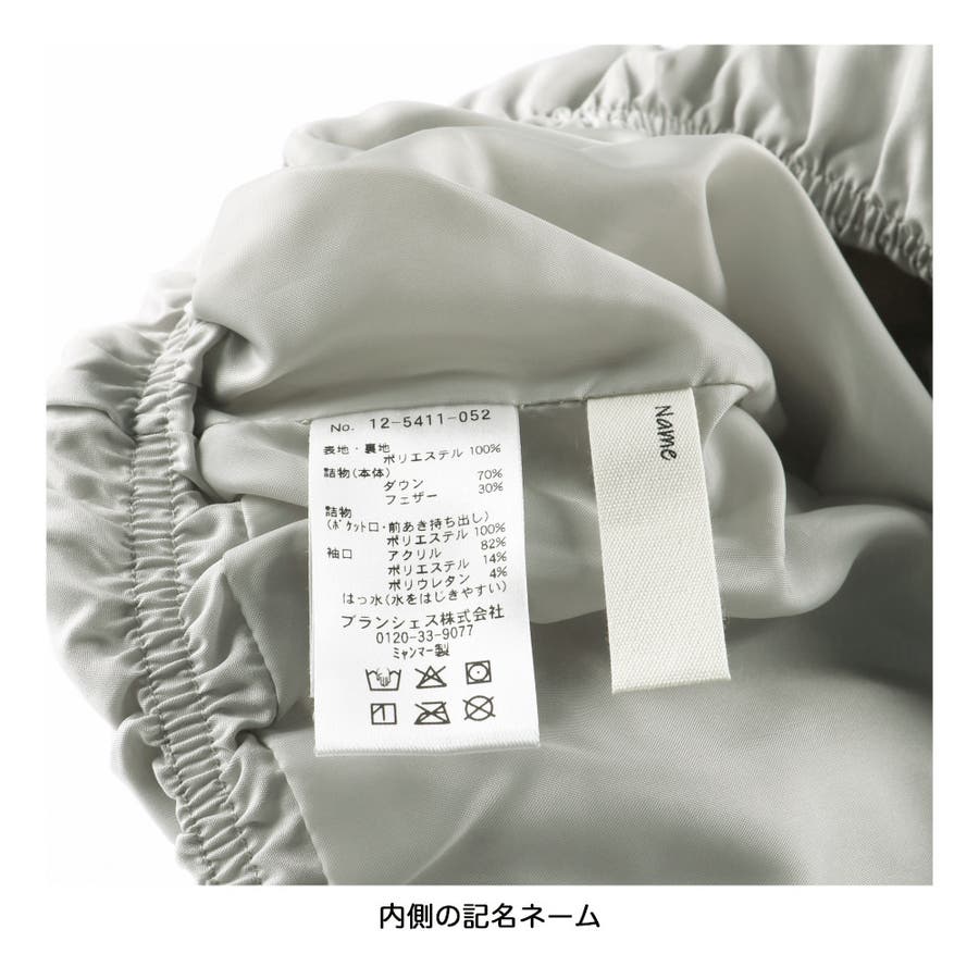 素材 | 【表地・裏地】ポリエステル100% 【詰物(本体)】ダウン70% フェザー30% 【詰物(ポケット口・前あき持ち出し)】ポリエステル100% 袖口:アクリル82% ポリエステル14% ポリウレタン4% はっ水(水をはじきやすい): |