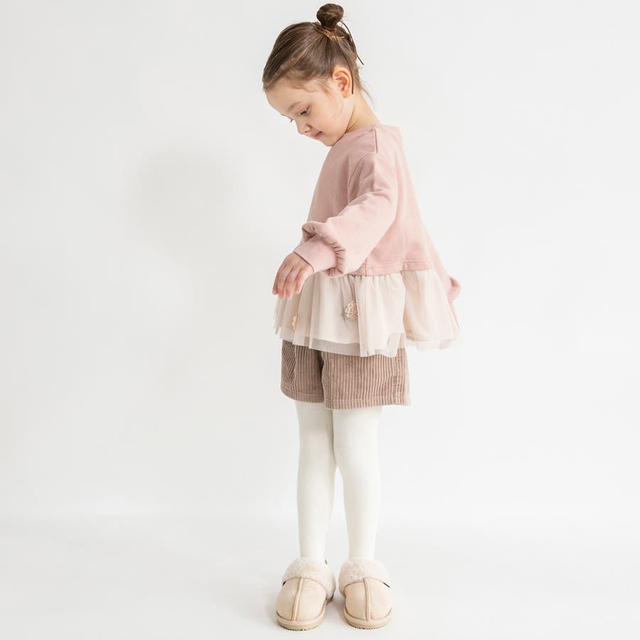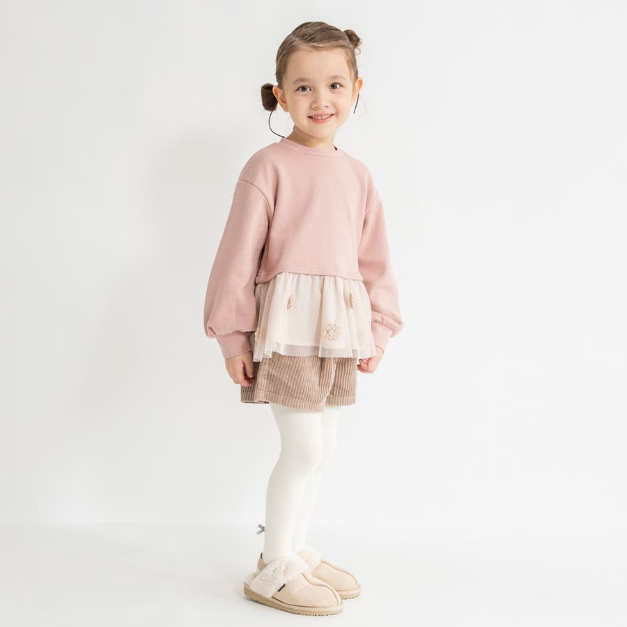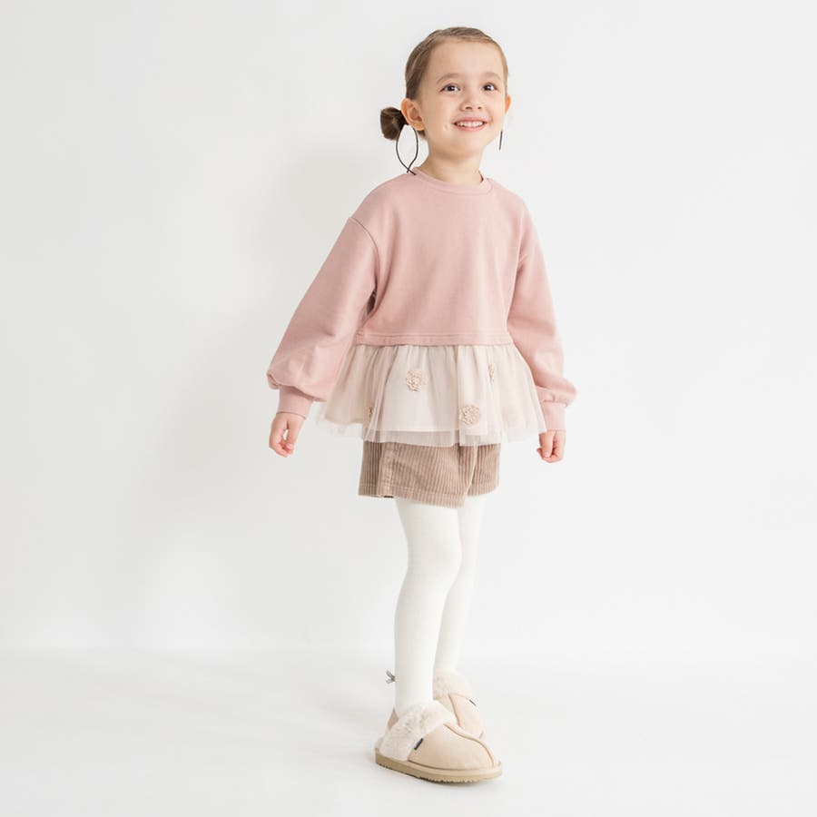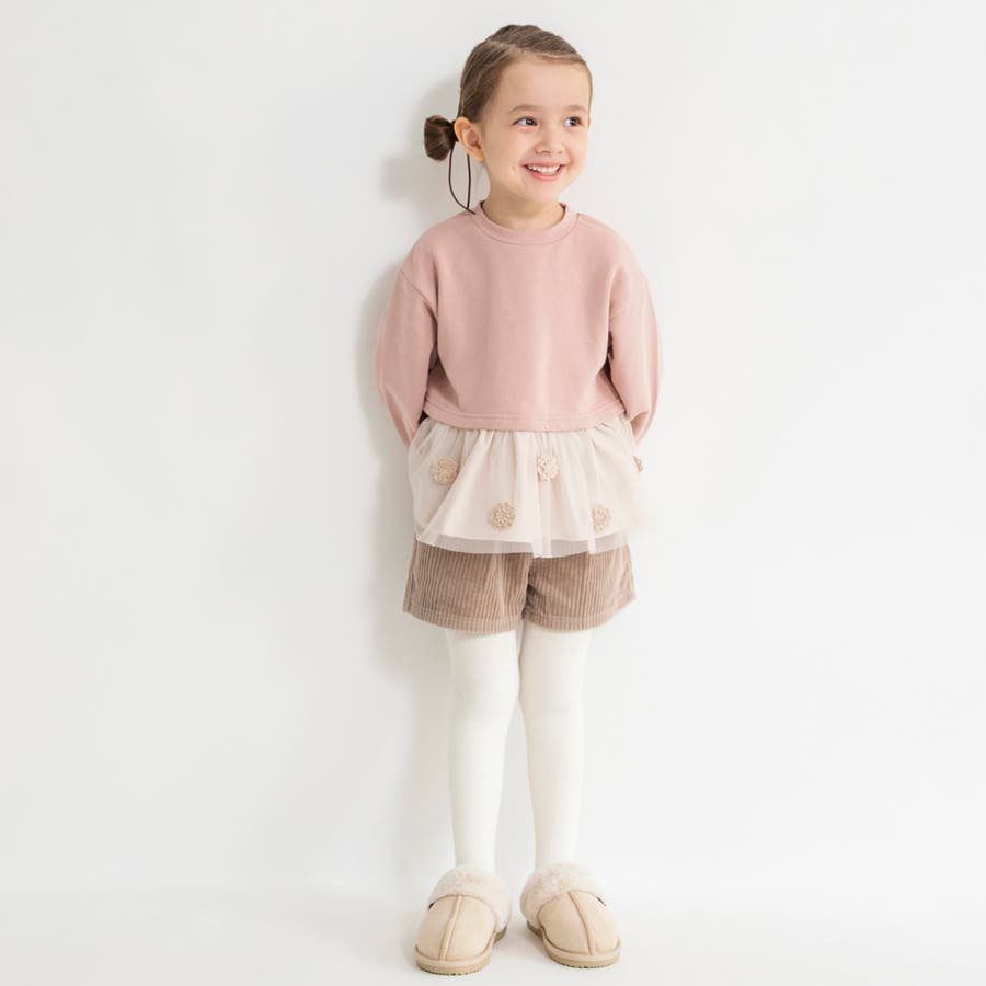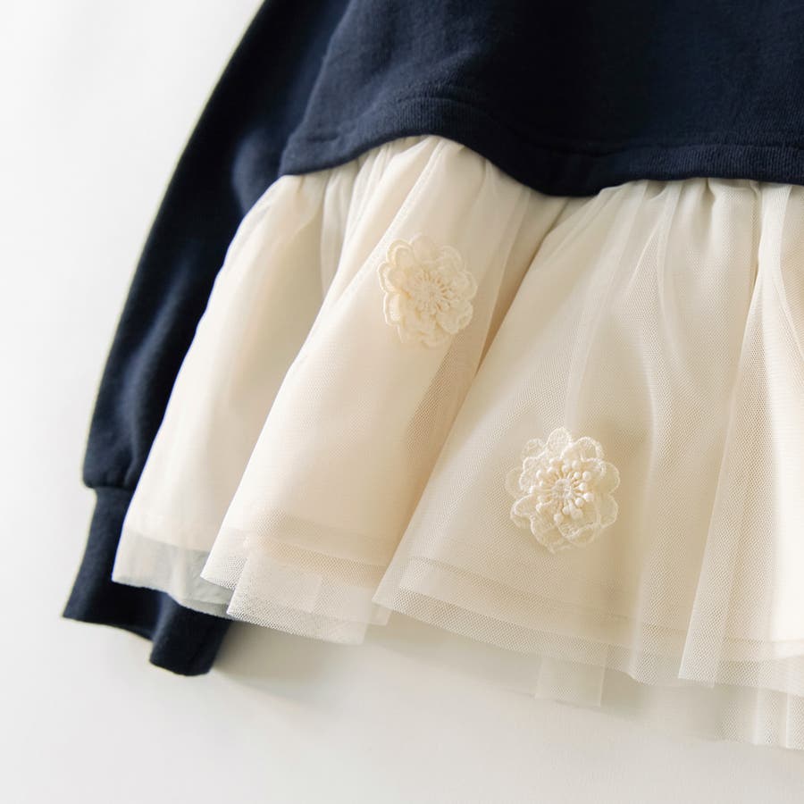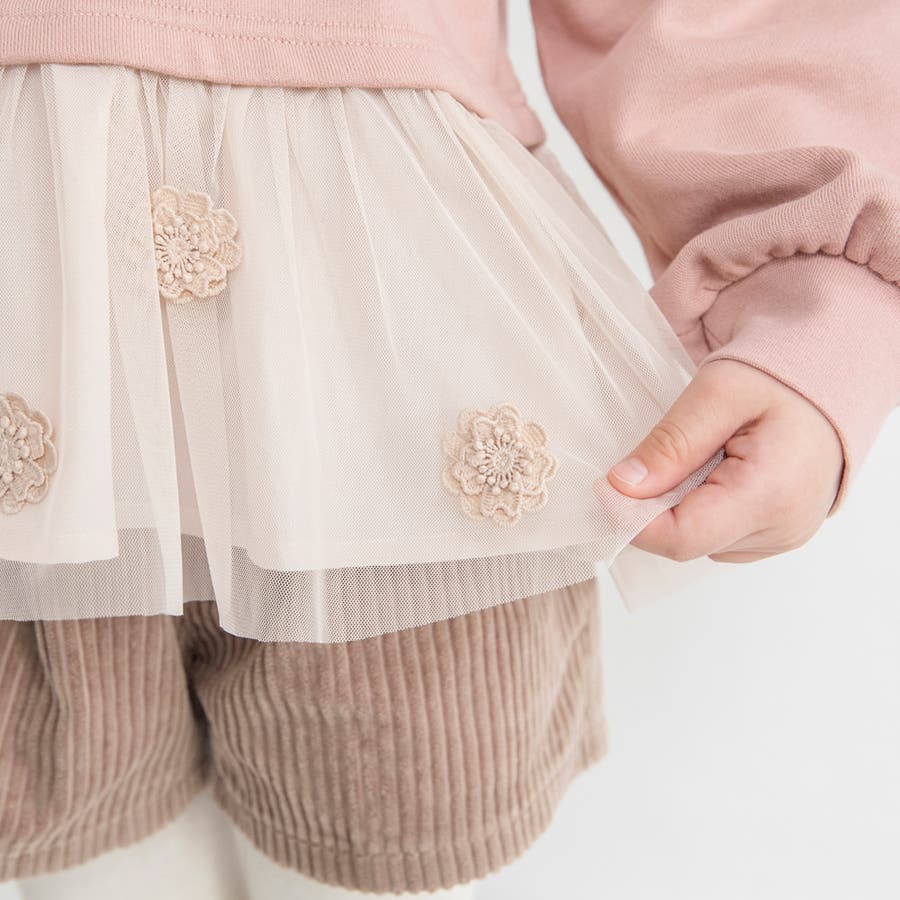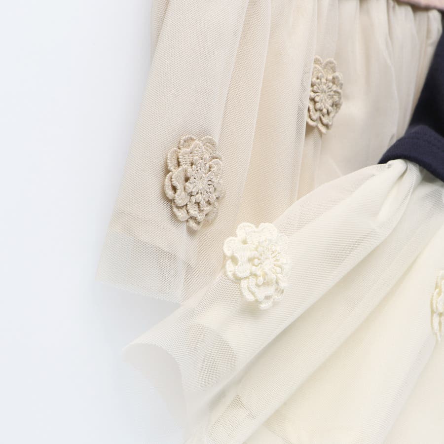 | 素材 | 本体:綿100% チュール部分:ポリエステル100% 布帛部分:ポリエステル80% 綿20% モチーフ:ポリエステル100% リブ部分:綿95% ポリウレタン5% |