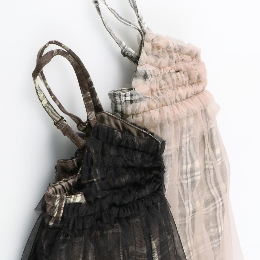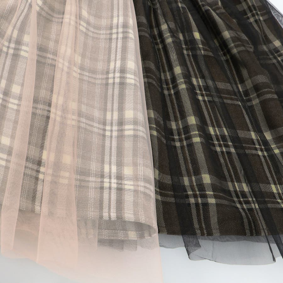 チュールの下に透けるチェック柄が程よいアクセントに