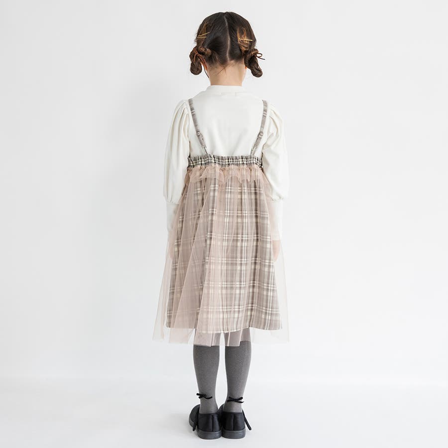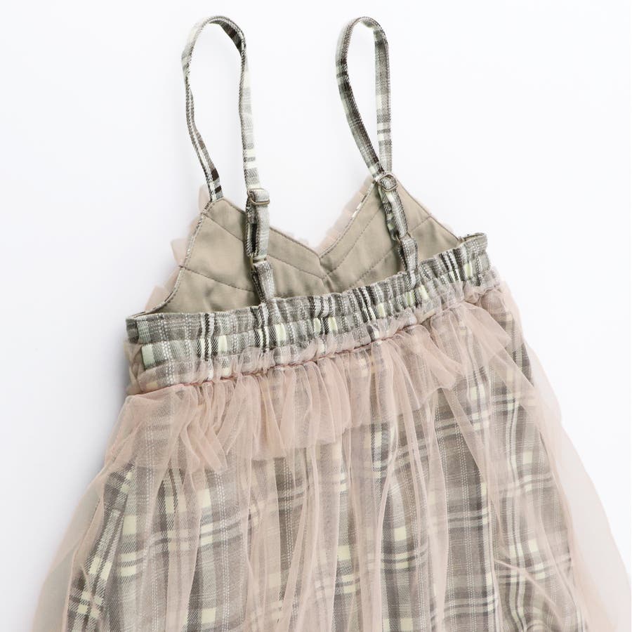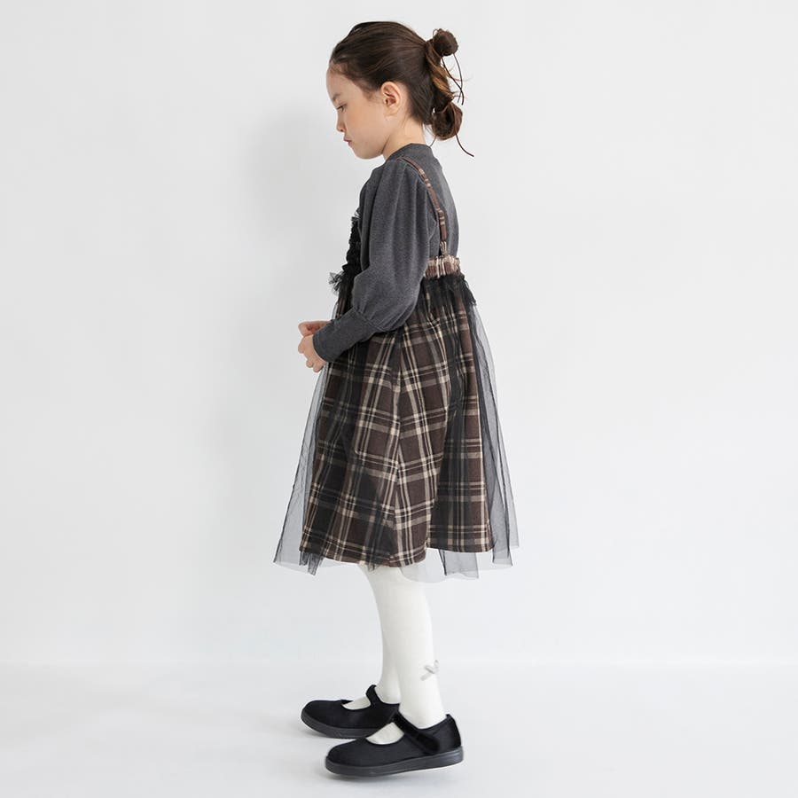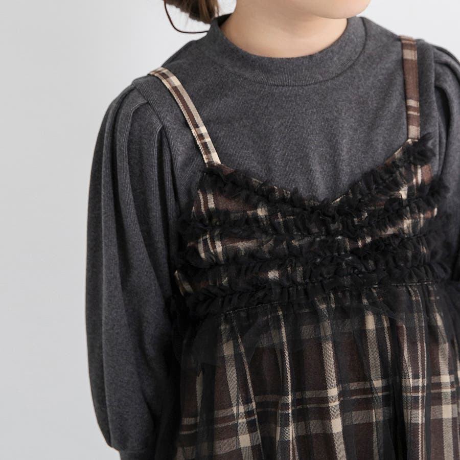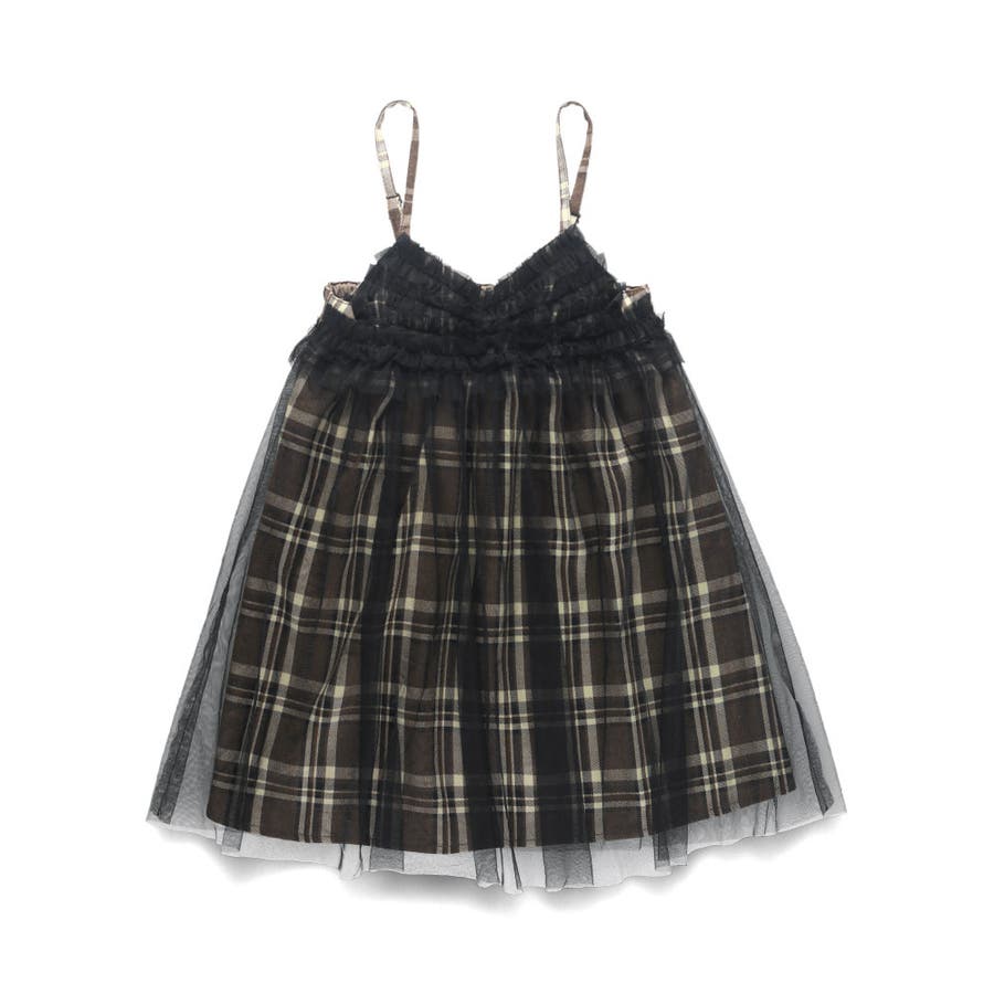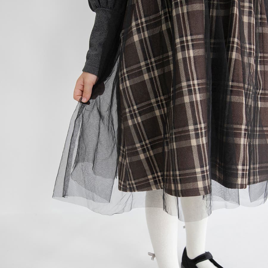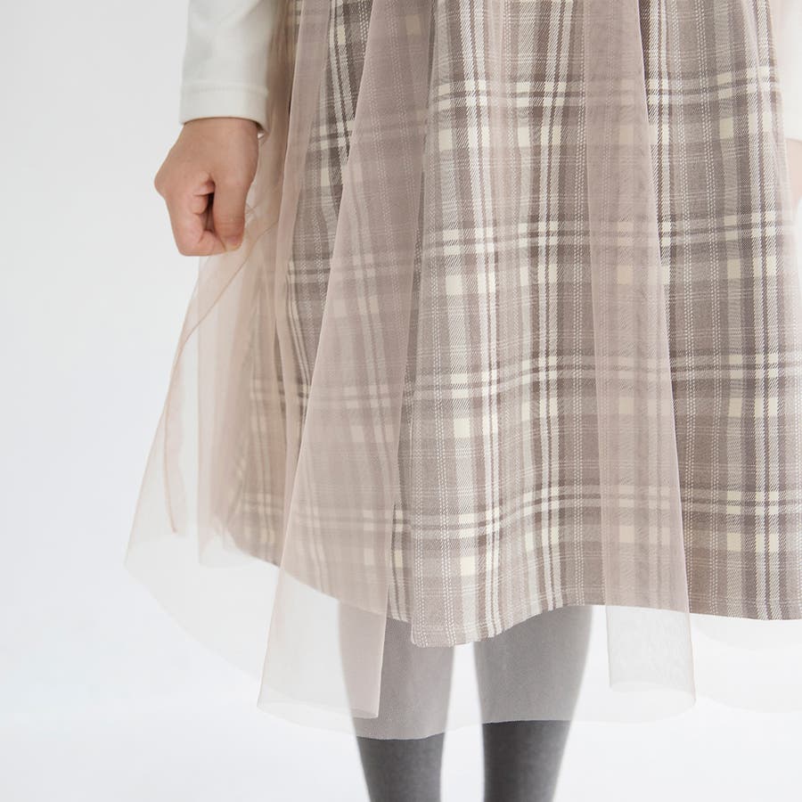 【プチレディ】チュール付きチェック柄ジャンパースカート