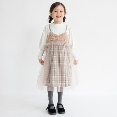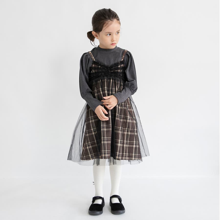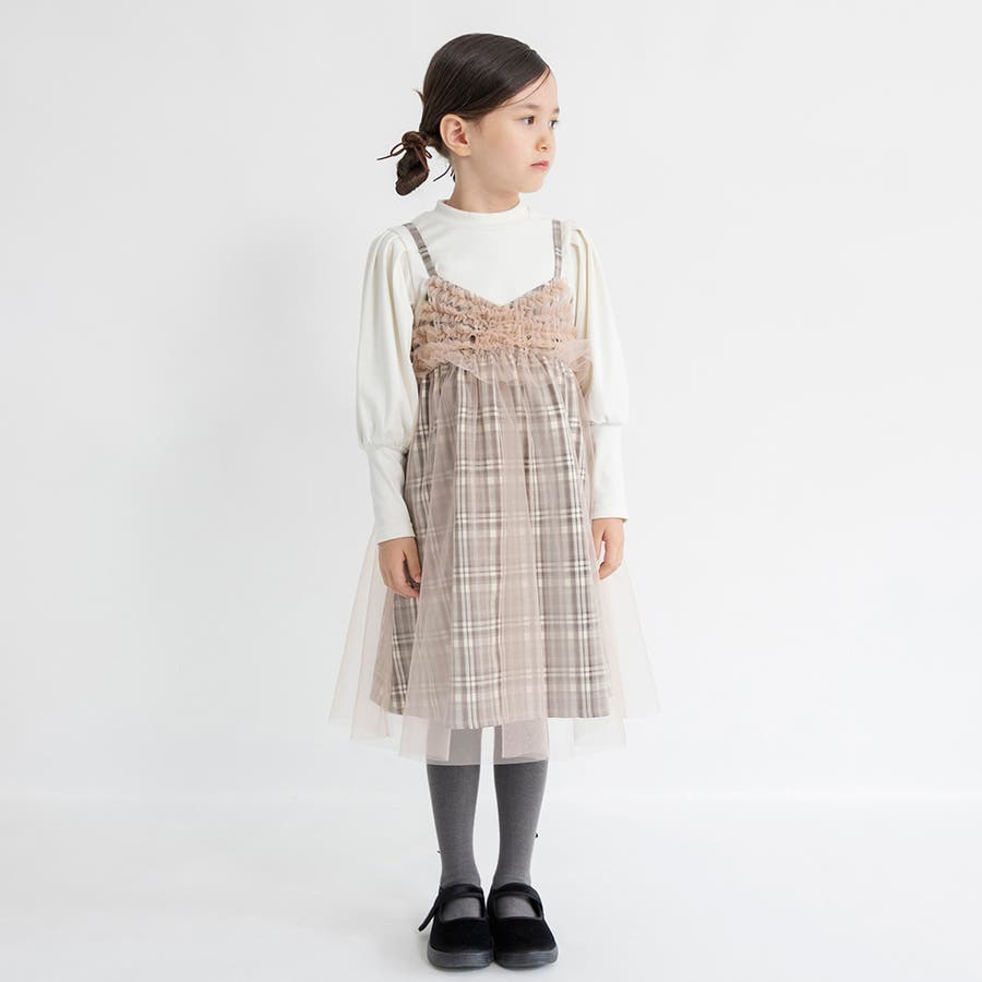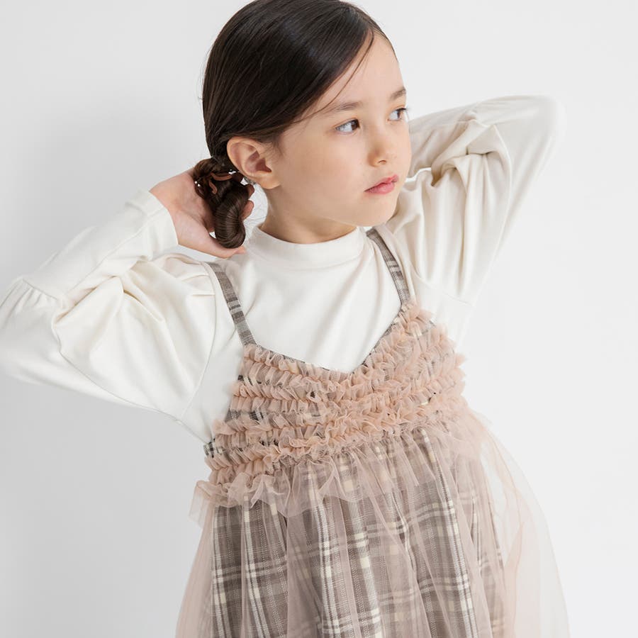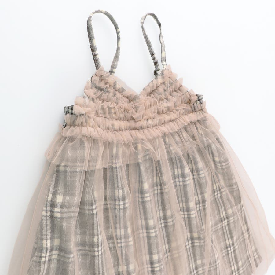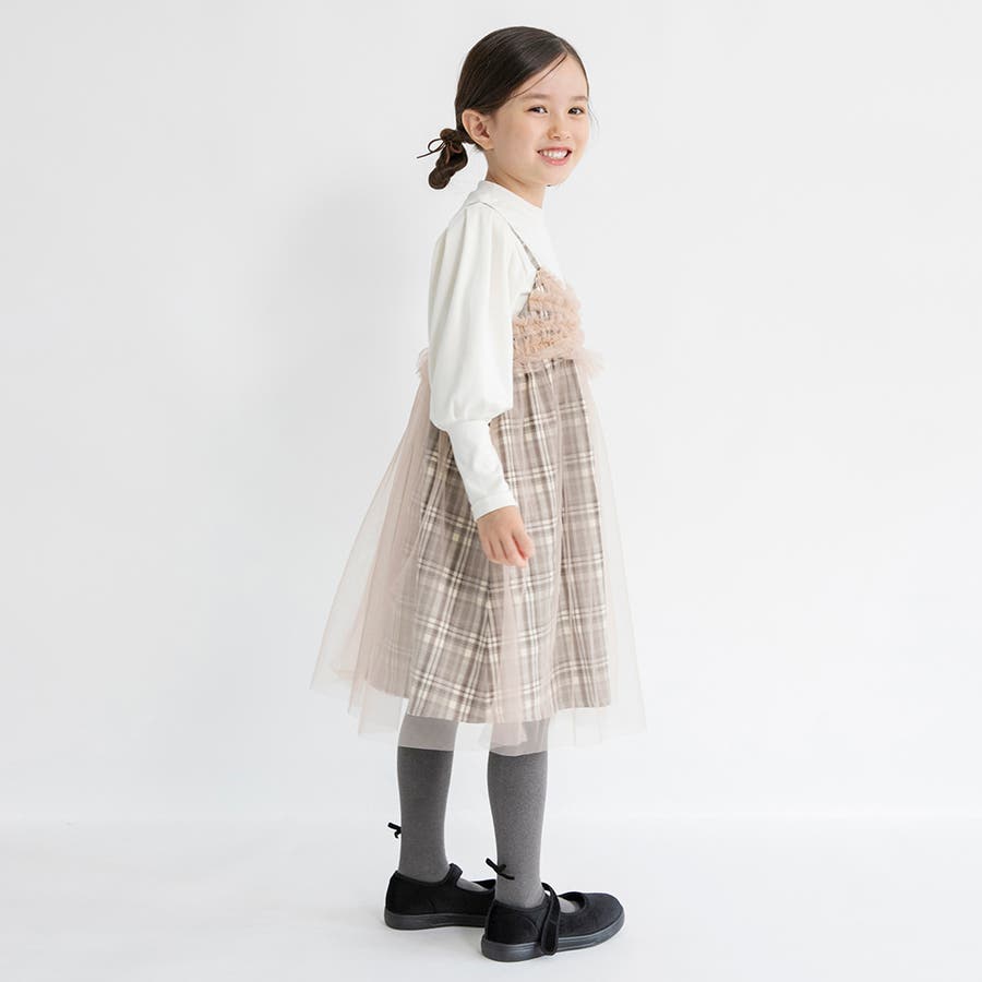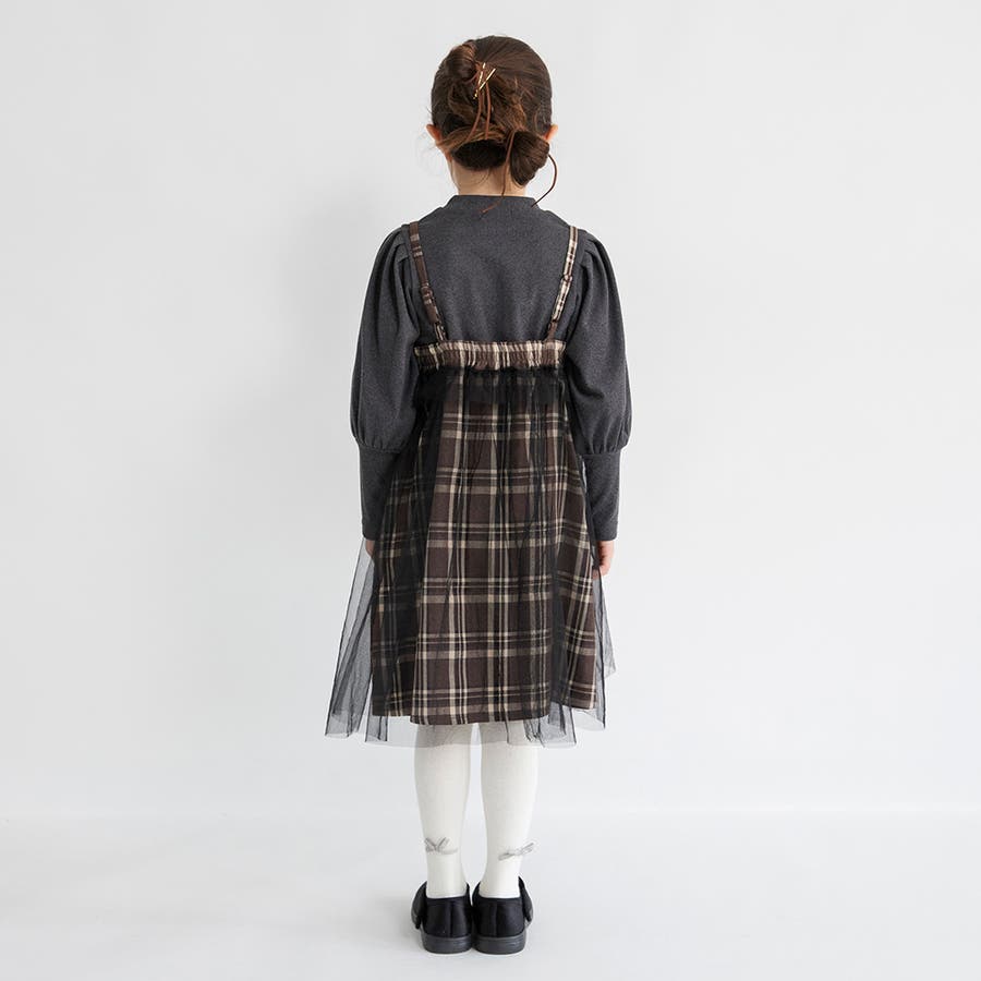 【プチレディ】チュール付きチェック柄ジャンパースカート