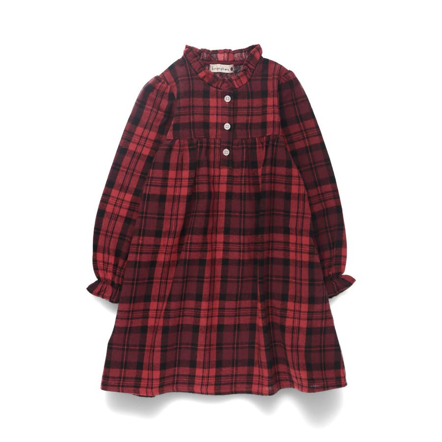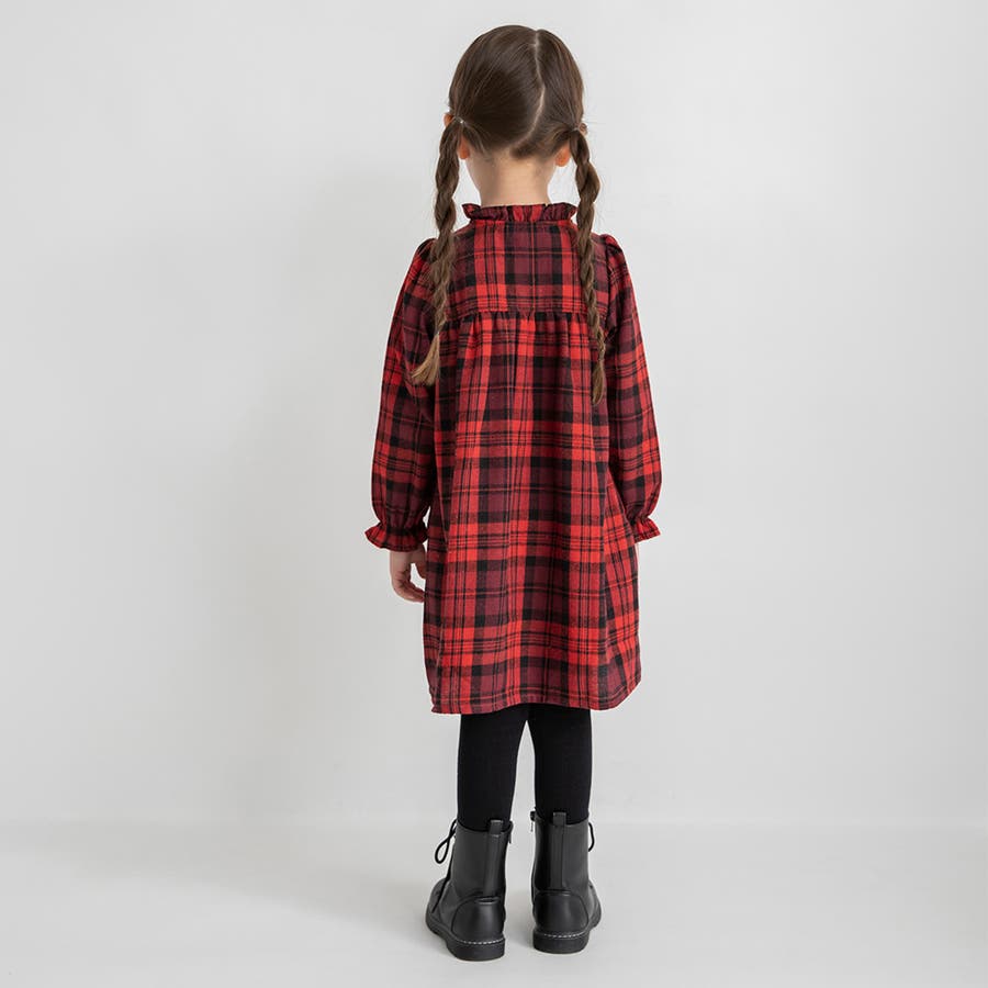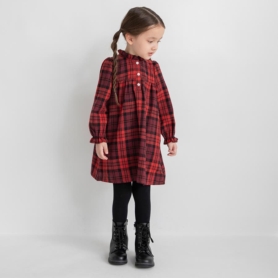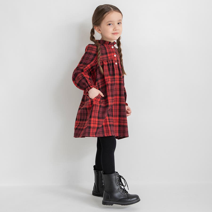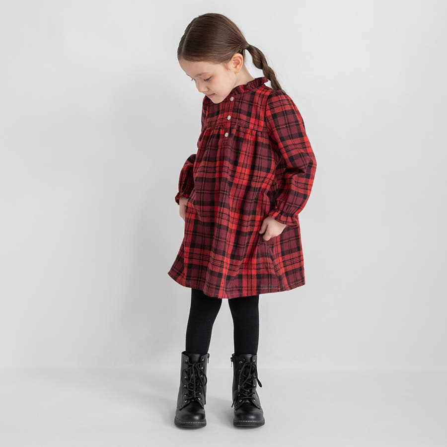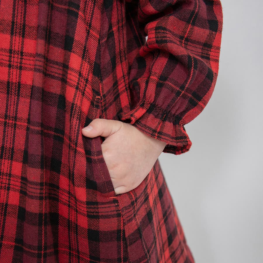 チェック柄胸切替ワンピース/150cm/女の子/起毛