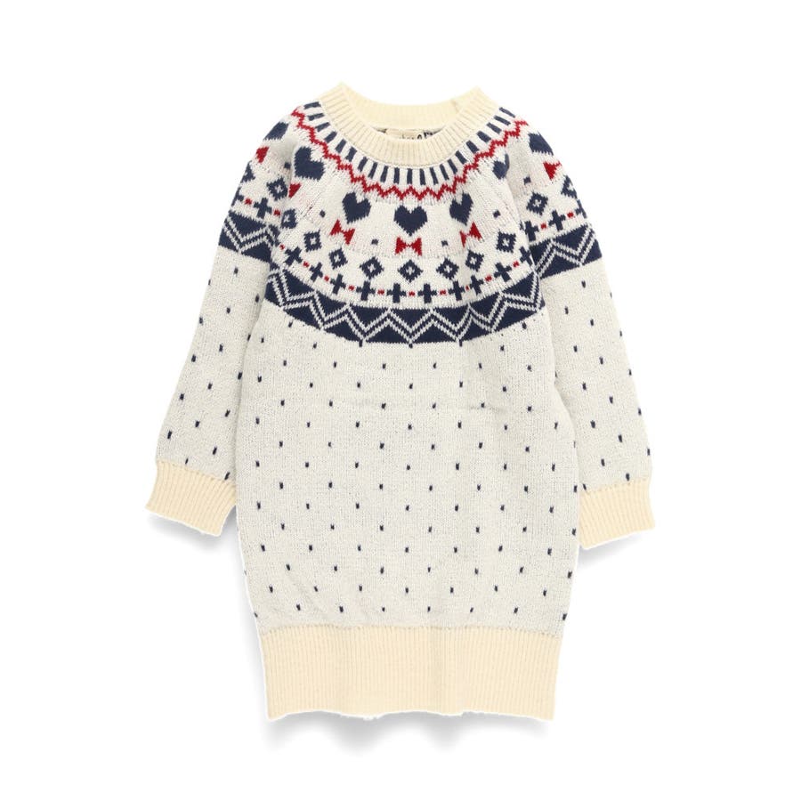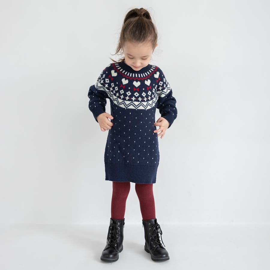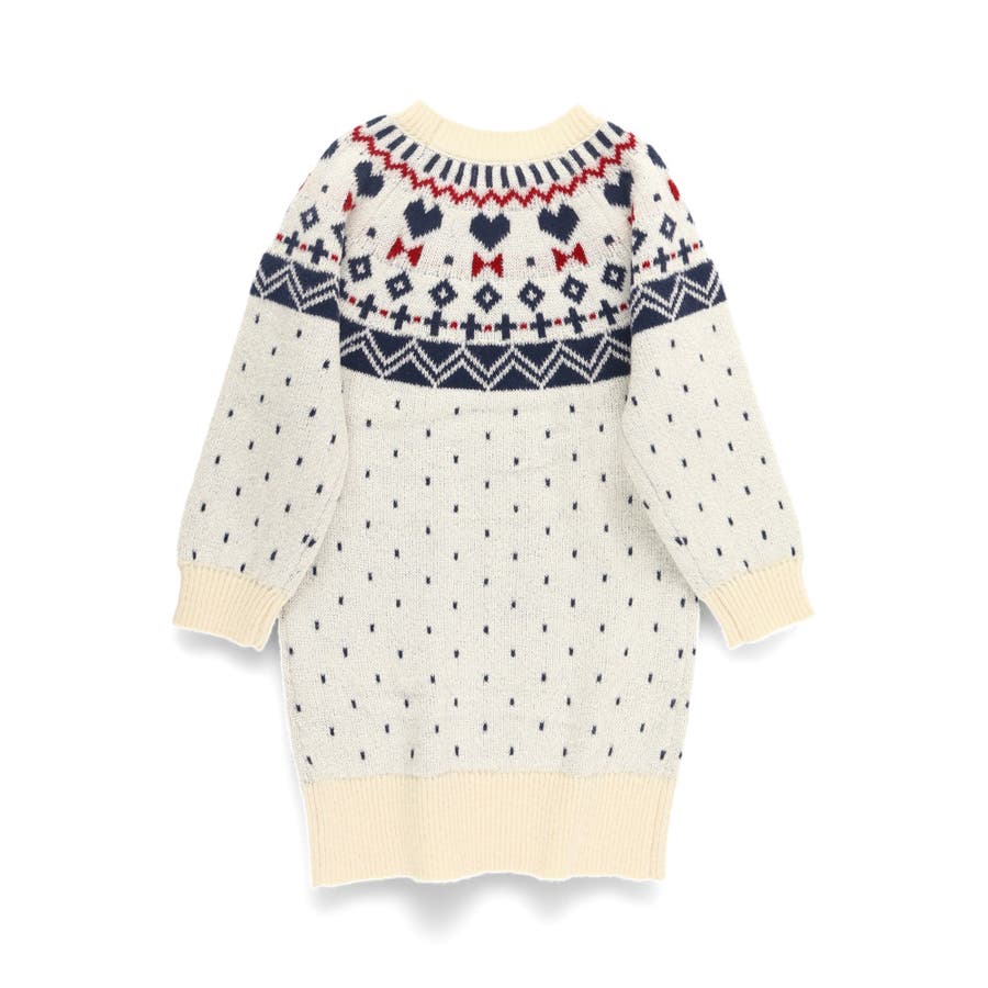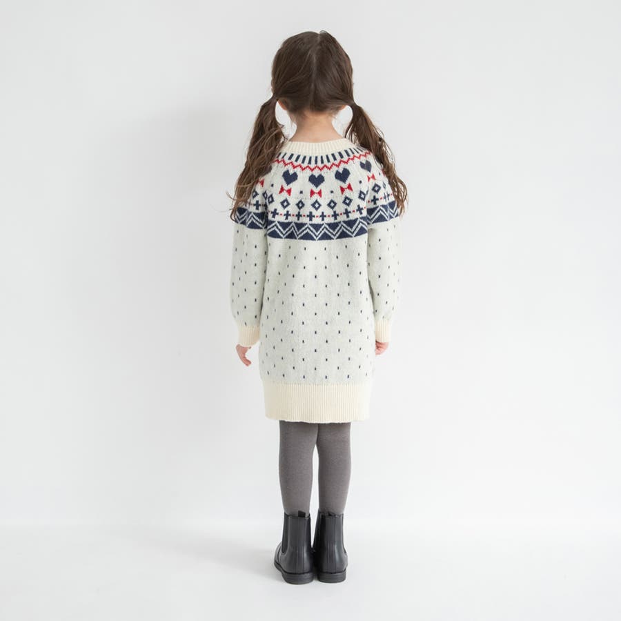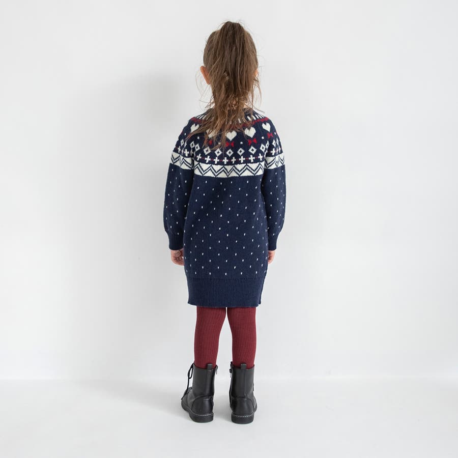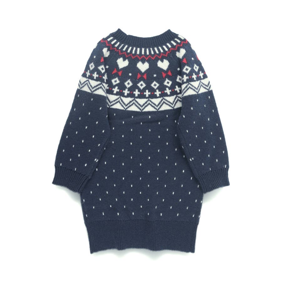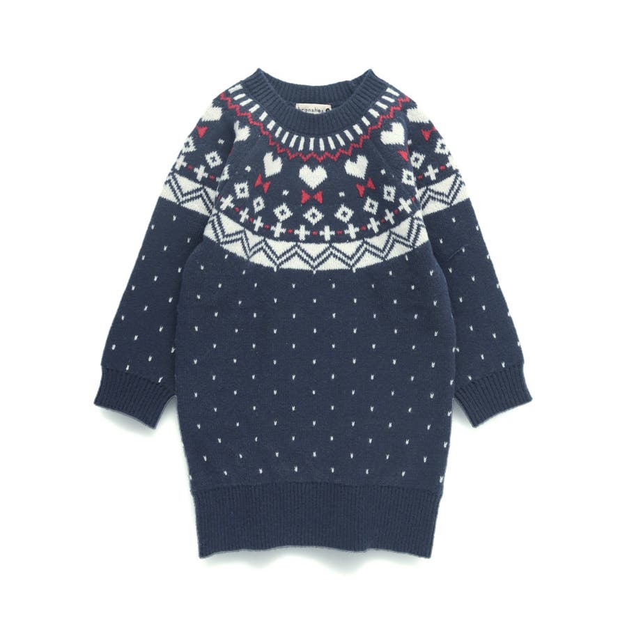 【マシンウォッシャブル】ノルディック風ハート柄ニットワンピース