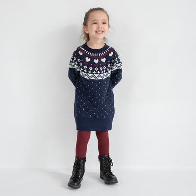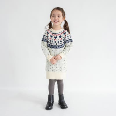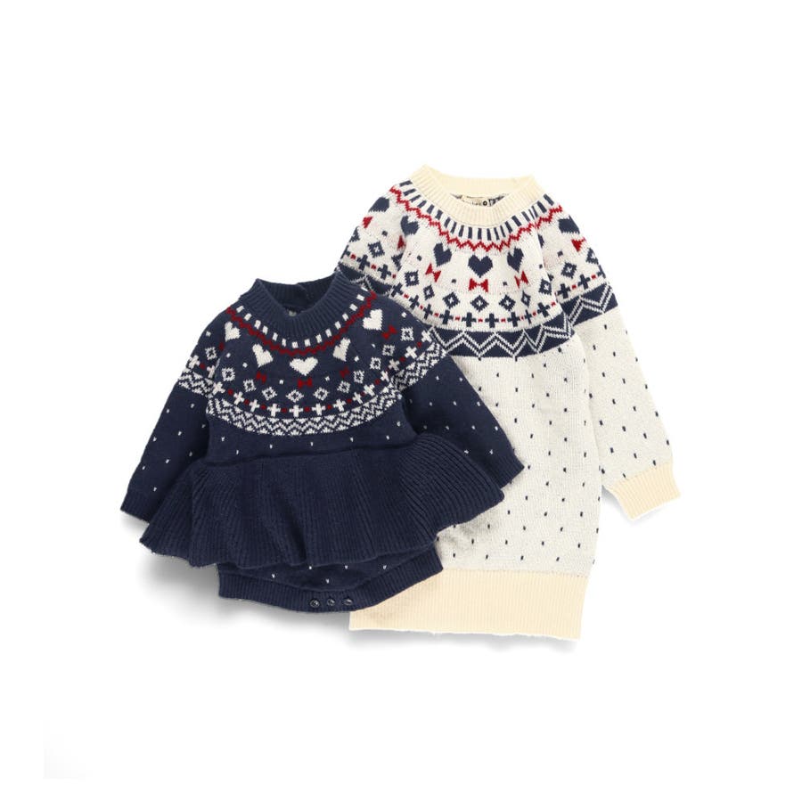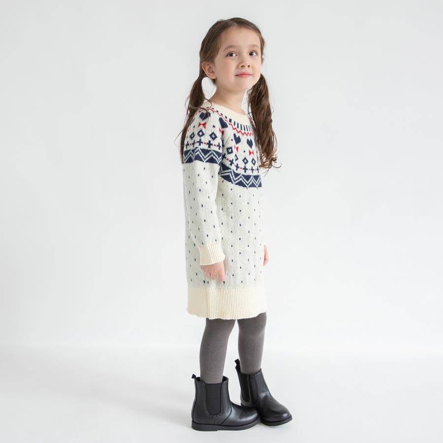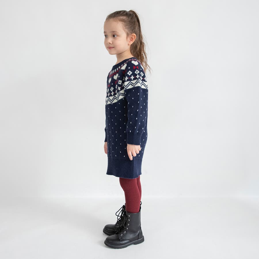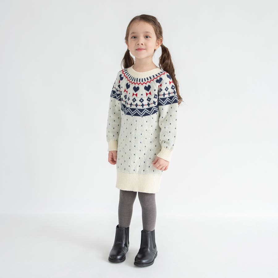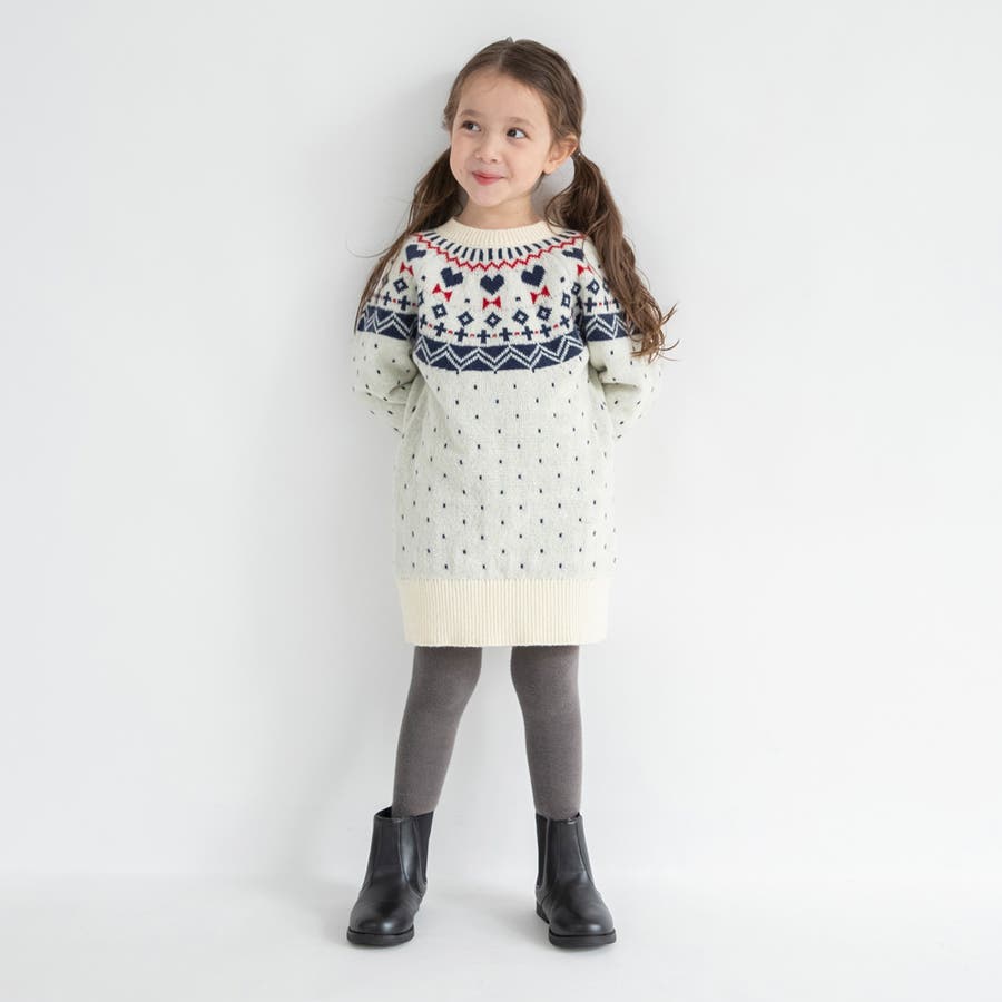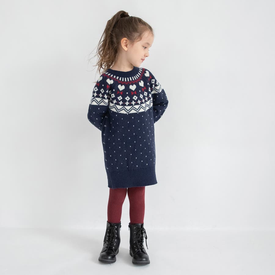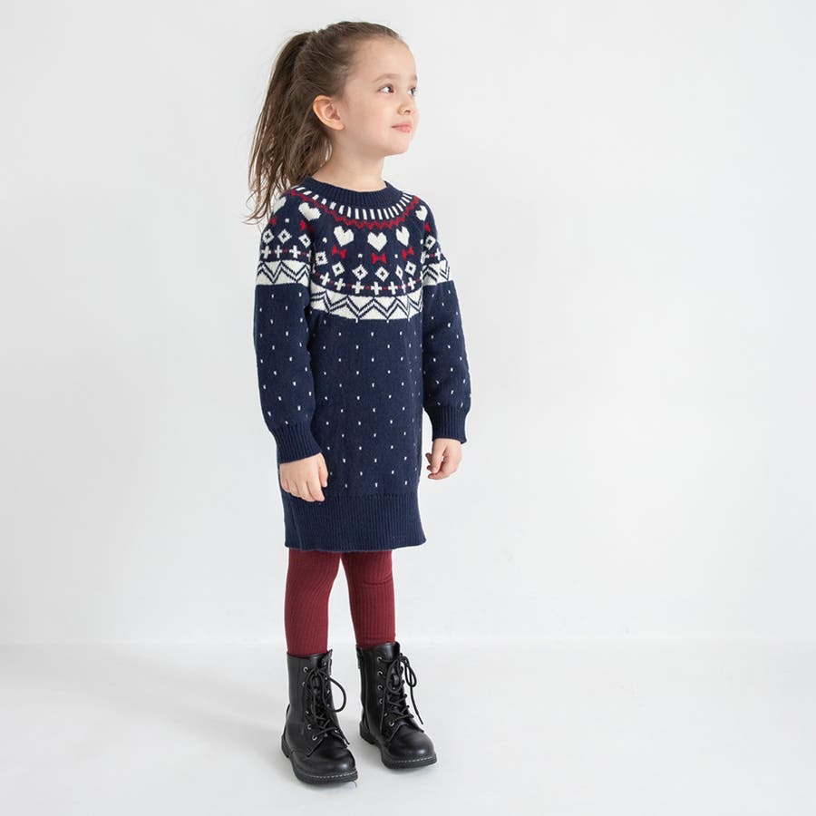 【マシンウォッシャブル】ノルディック風ハート柄ニットワンピース
