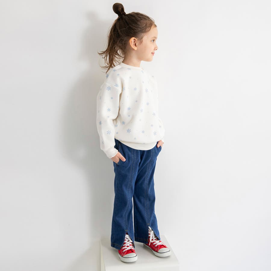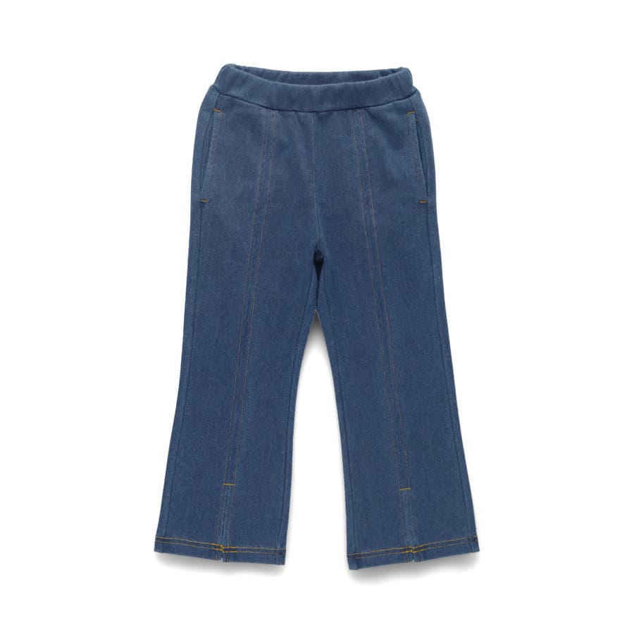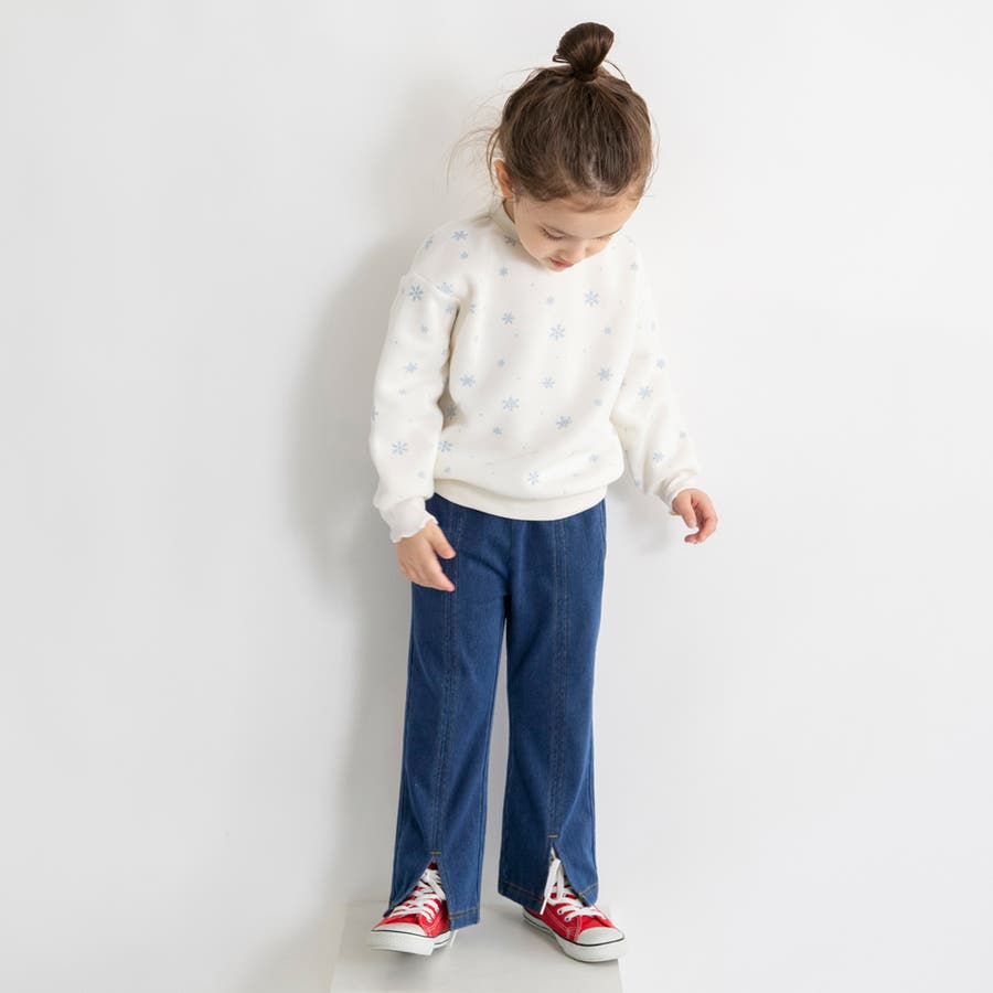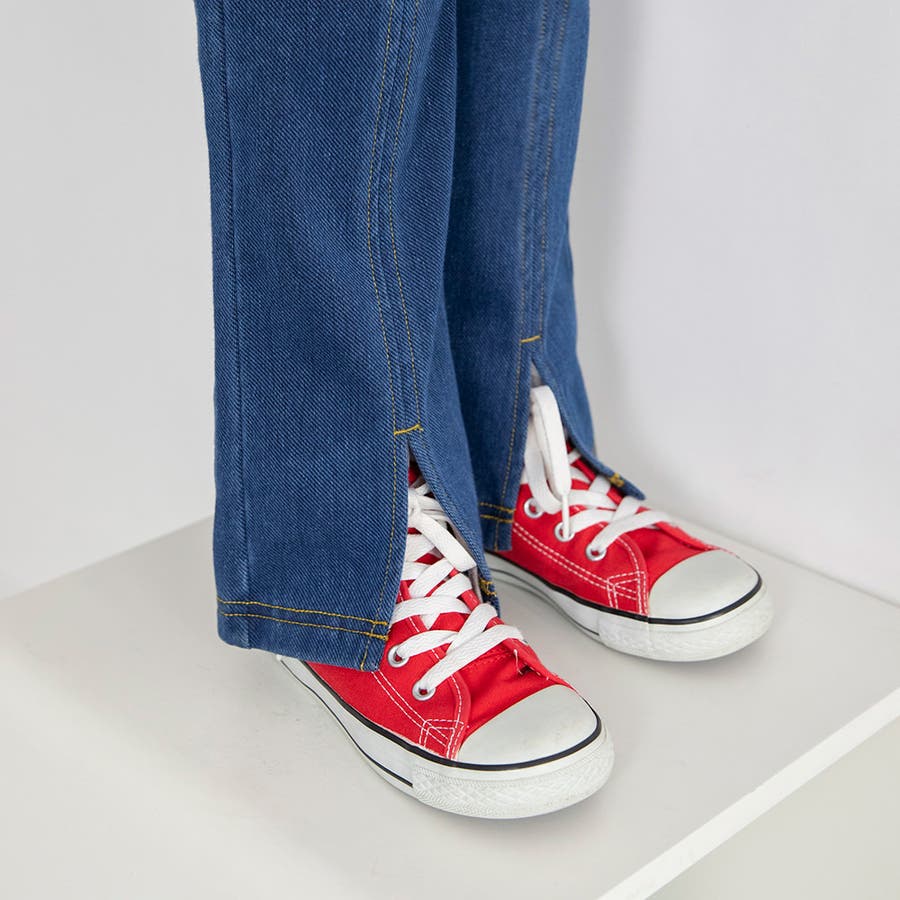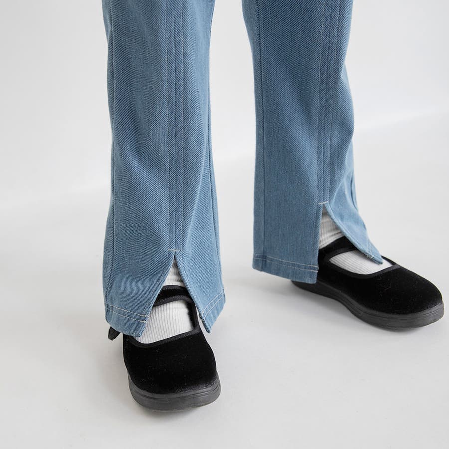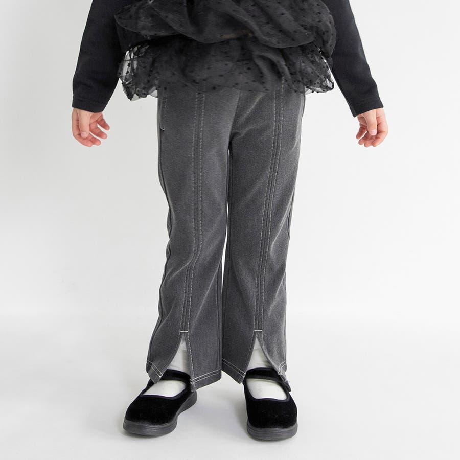 スリット入りフレア裏起毛パンツ デニム ロングパンツ