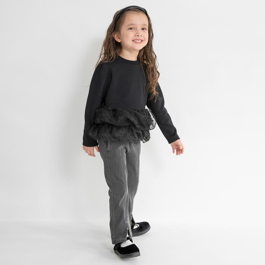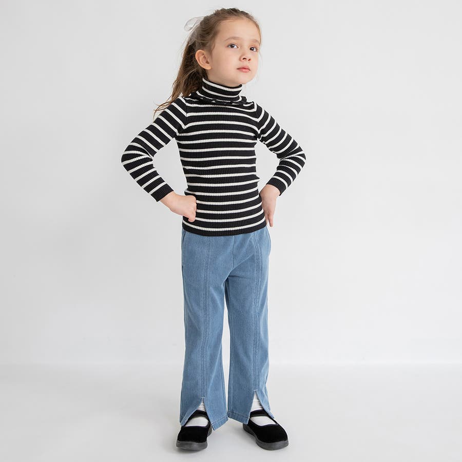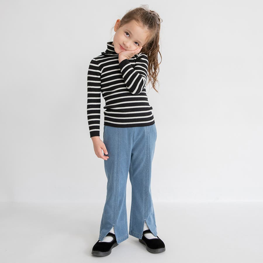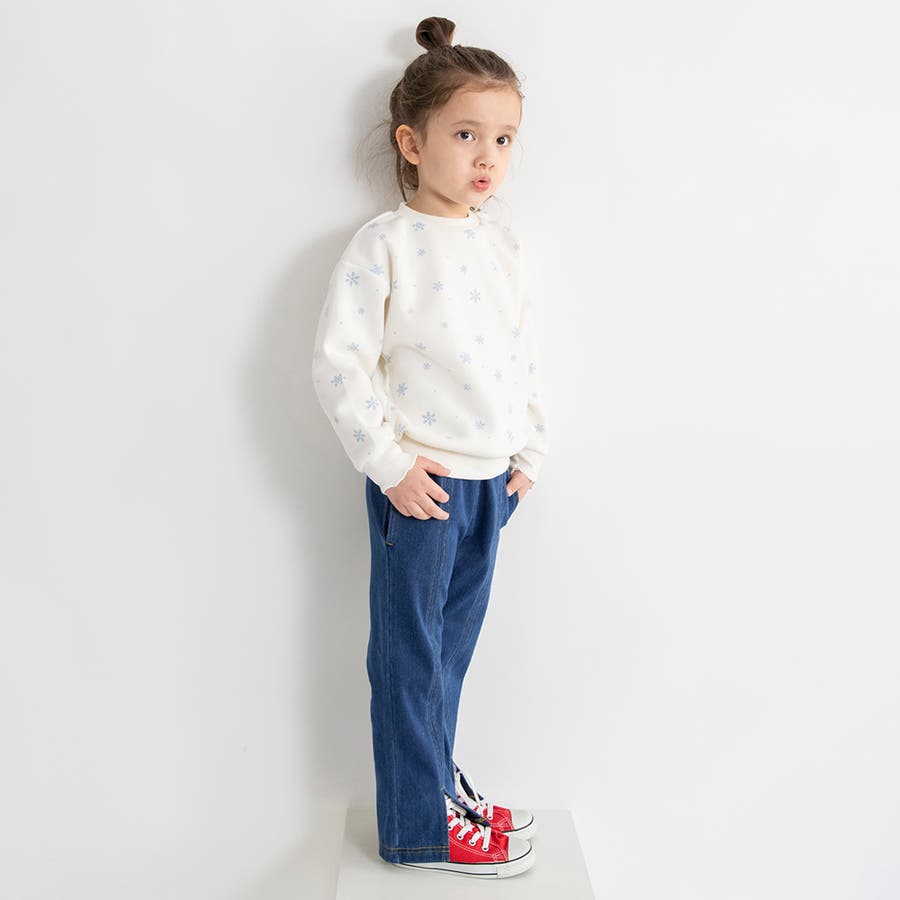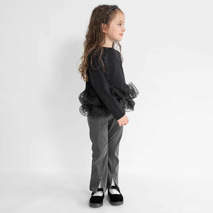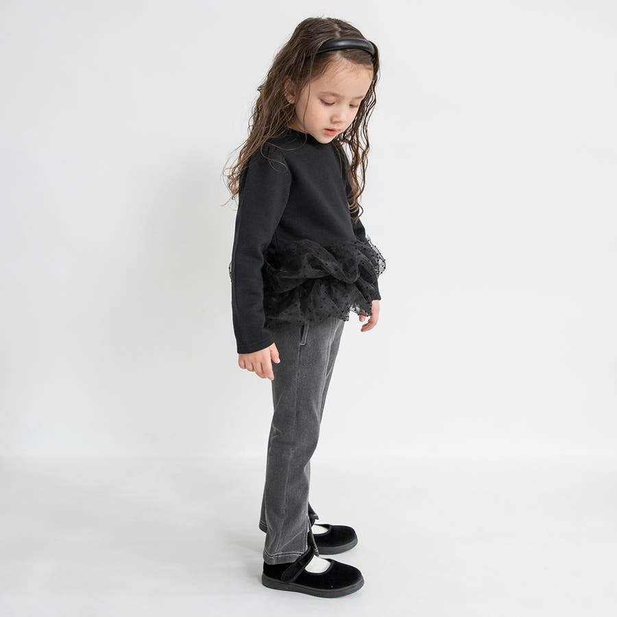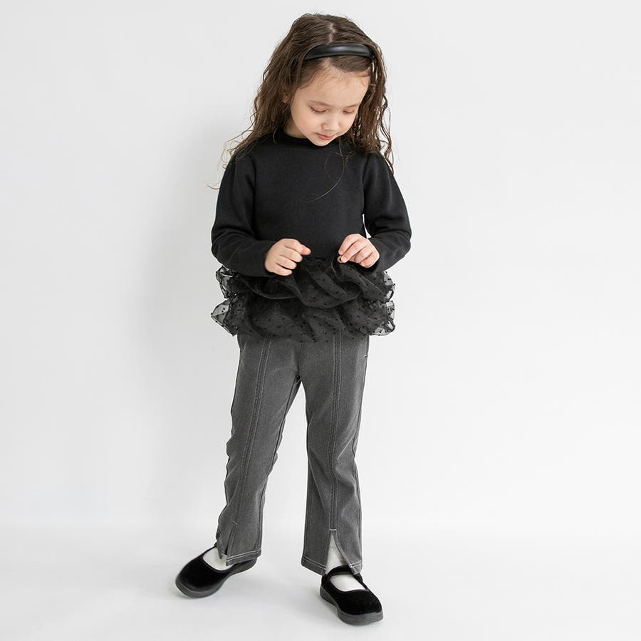 スリット入りフレア裏起毛パンツ デニム ロングパンツ