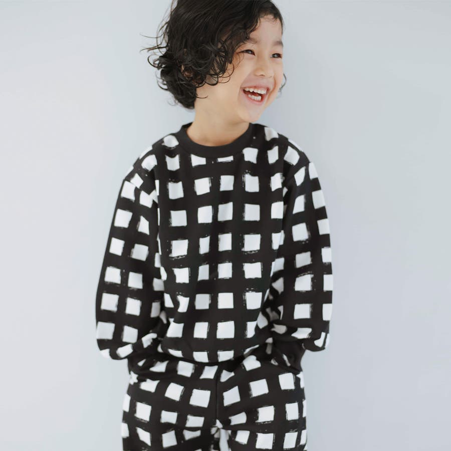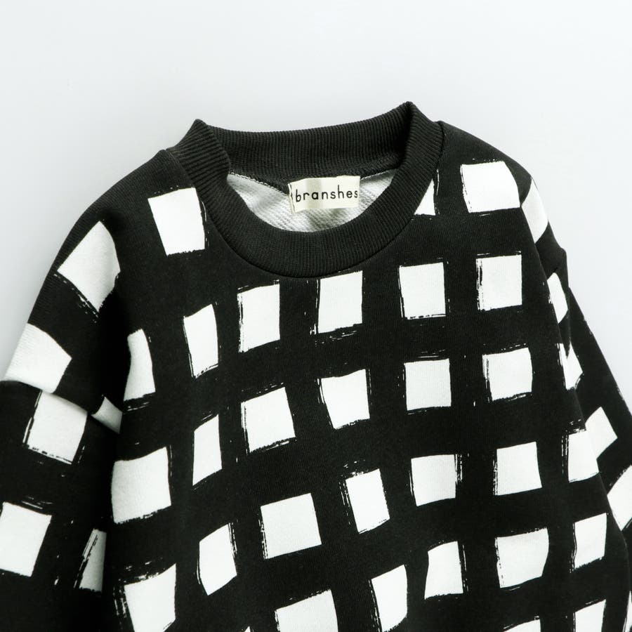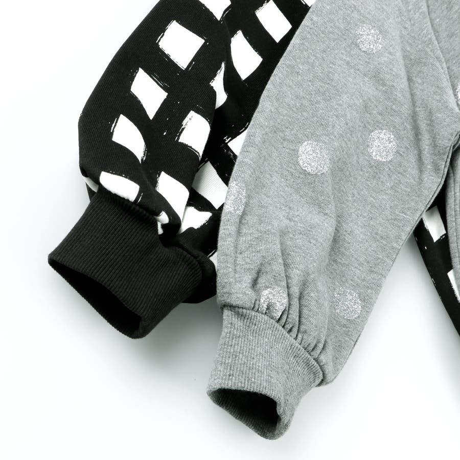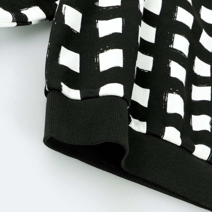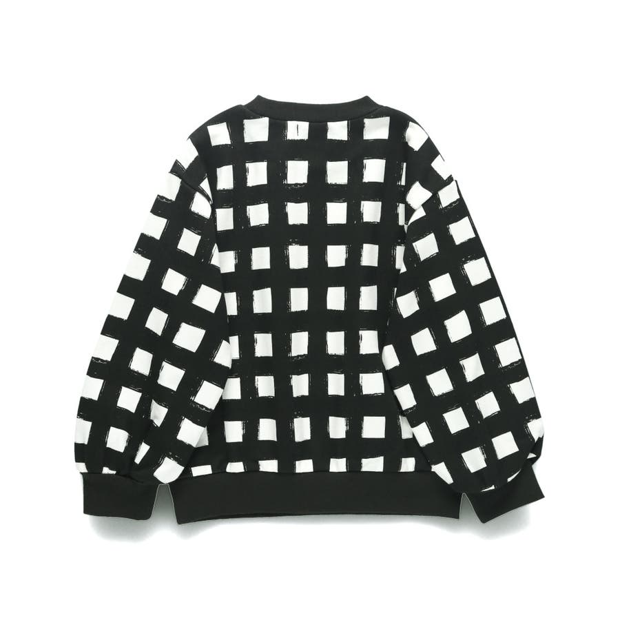 手書き風チェック柄とラメドット柄が目を惹くトレーナー