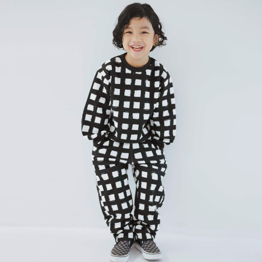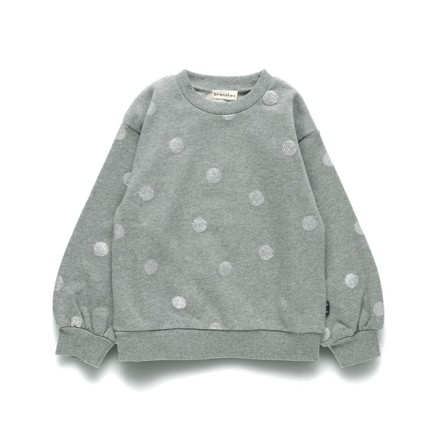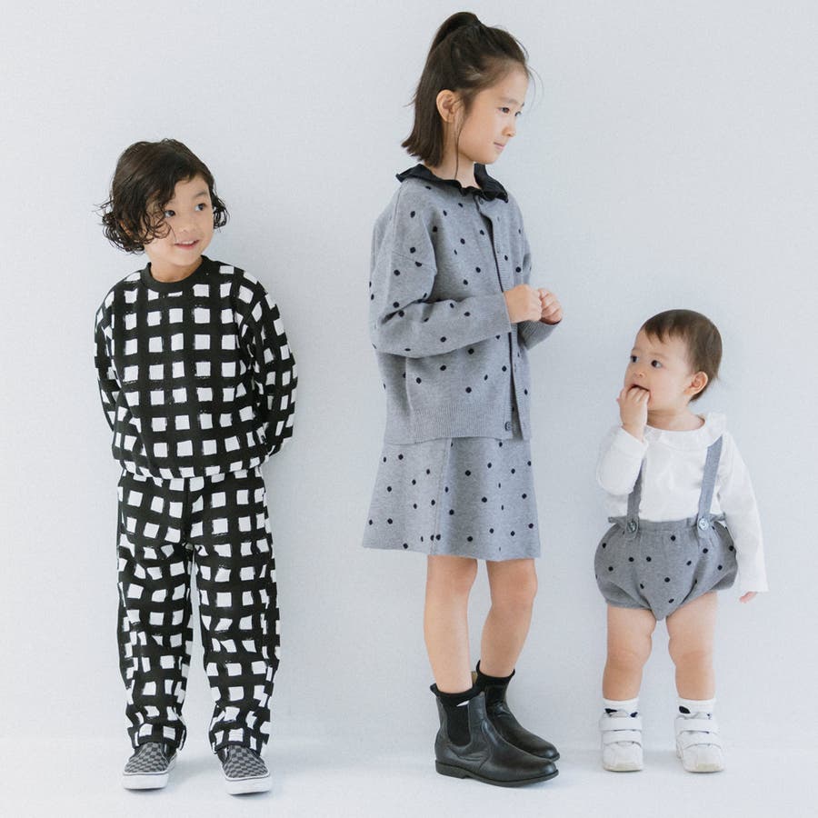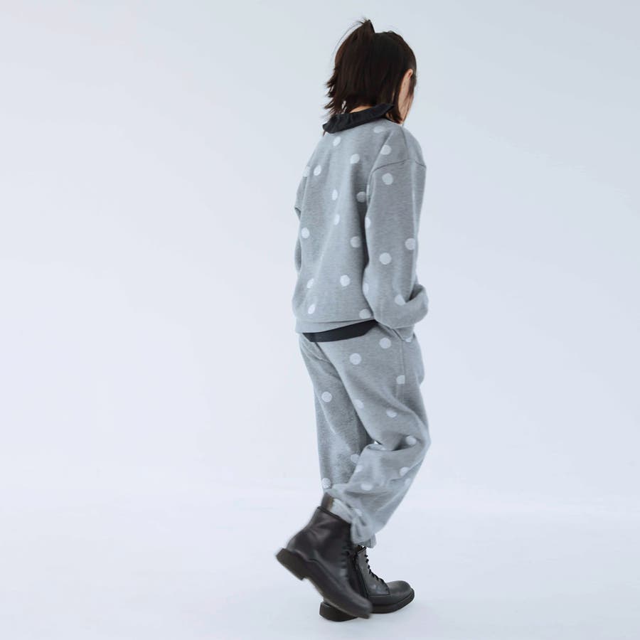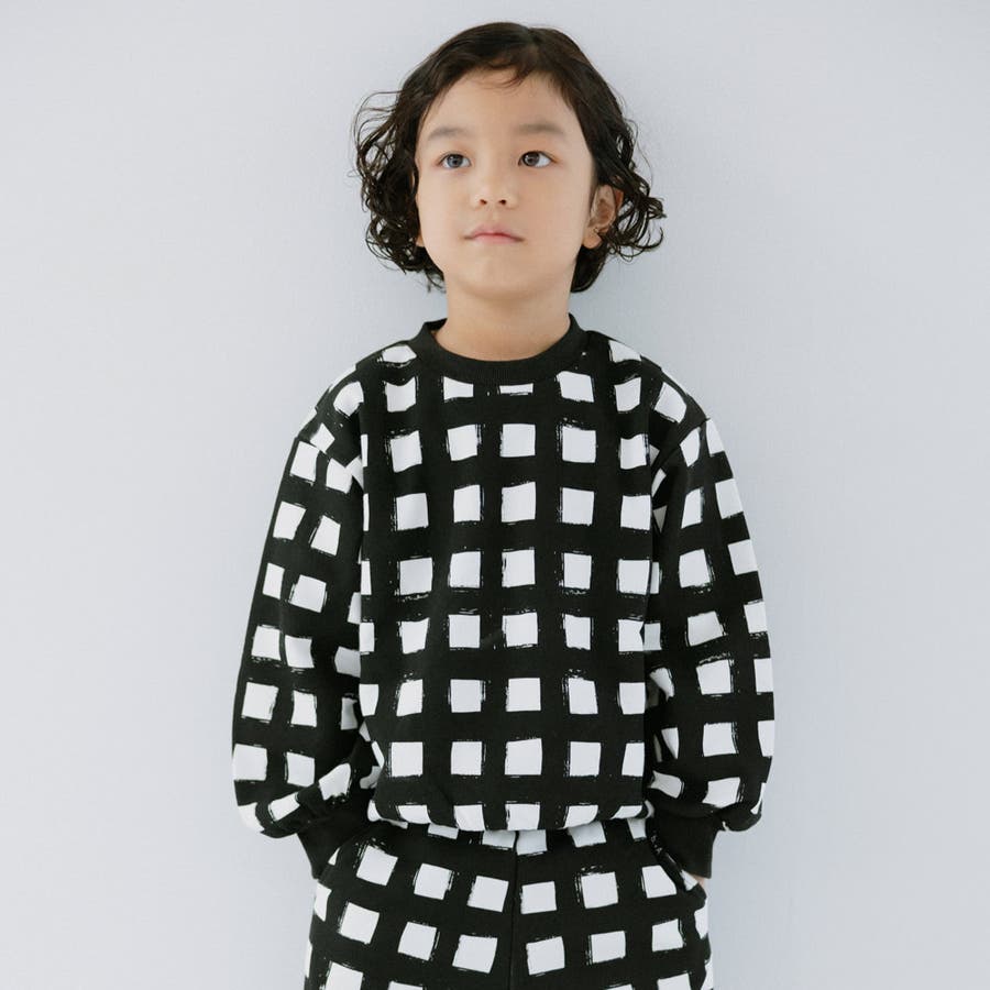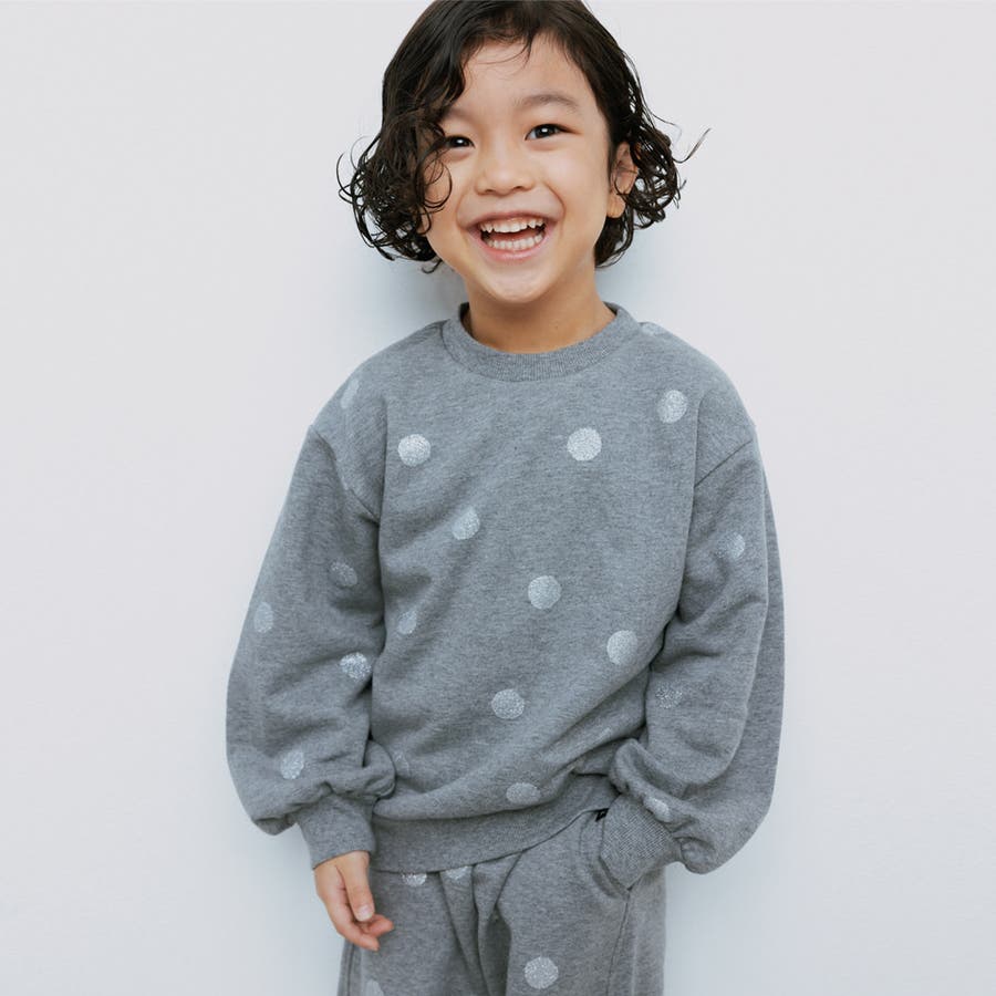 手書き風チェック柄とラメドット柄が目を惹くトレーナー