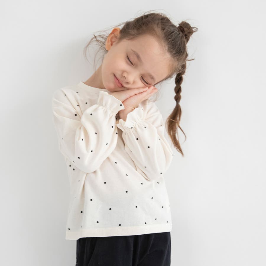 袖口のゴム入りギャザーで女の子らさしさが引き立ちます