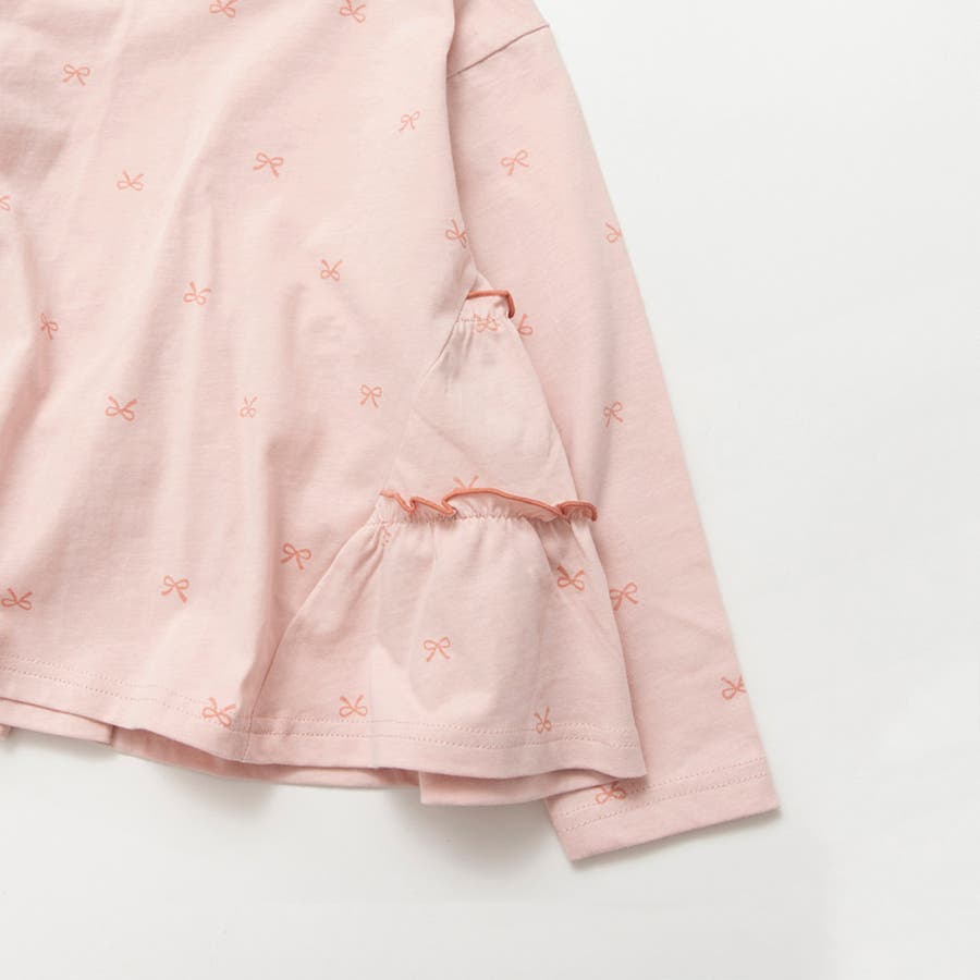 小さなリボンモチーフの総柄が散りばめられ、
