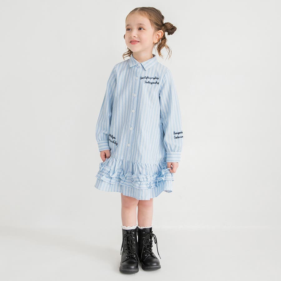 【おそろい】ストライプ柄ロゴ刺しゅうワンピース キッズ 女の子