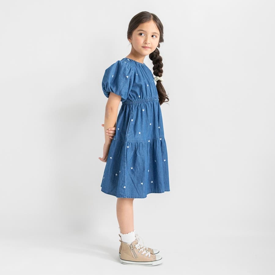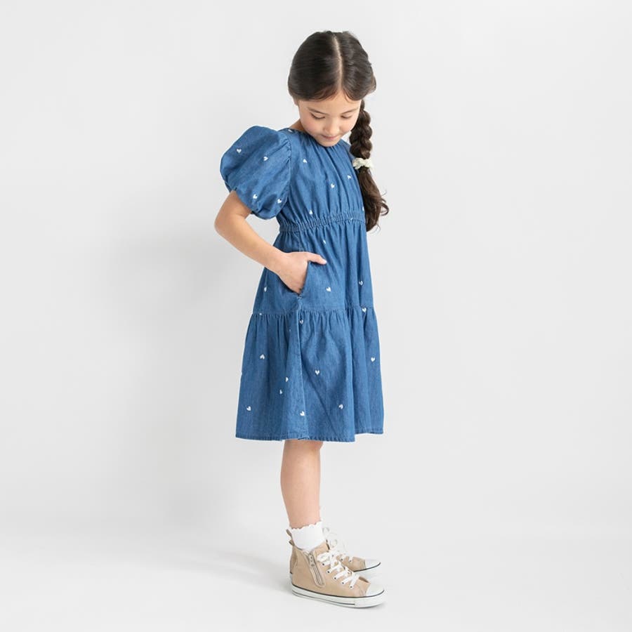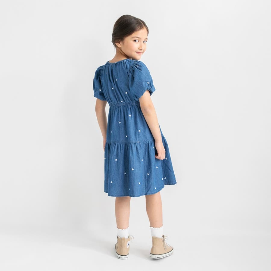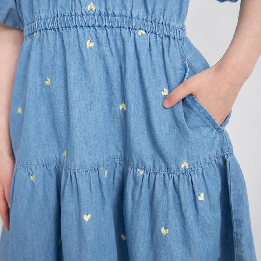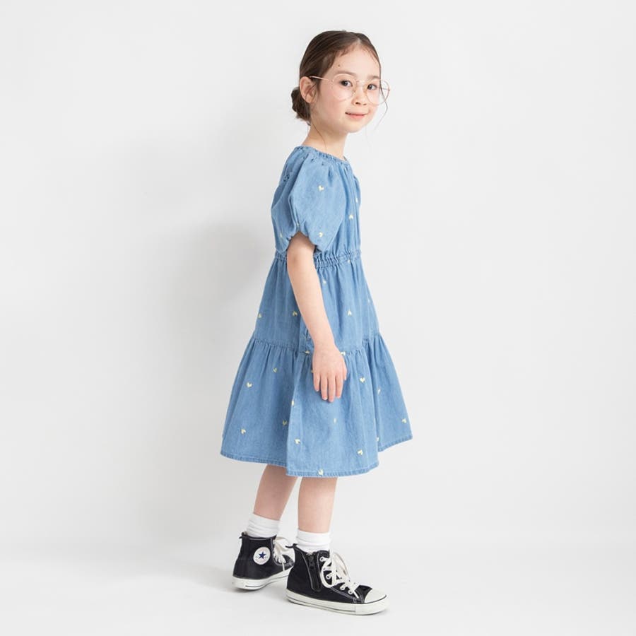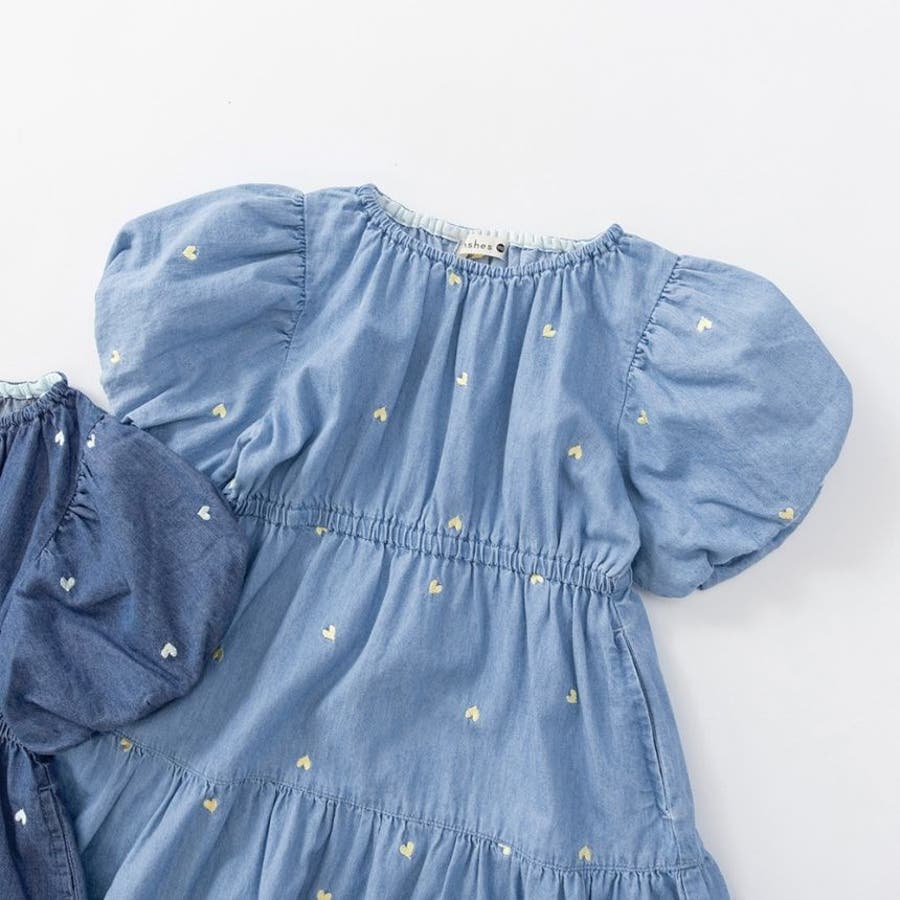 【おそろい】ハート刺しゅうデニムワンピース