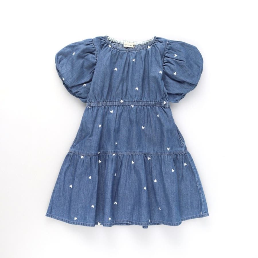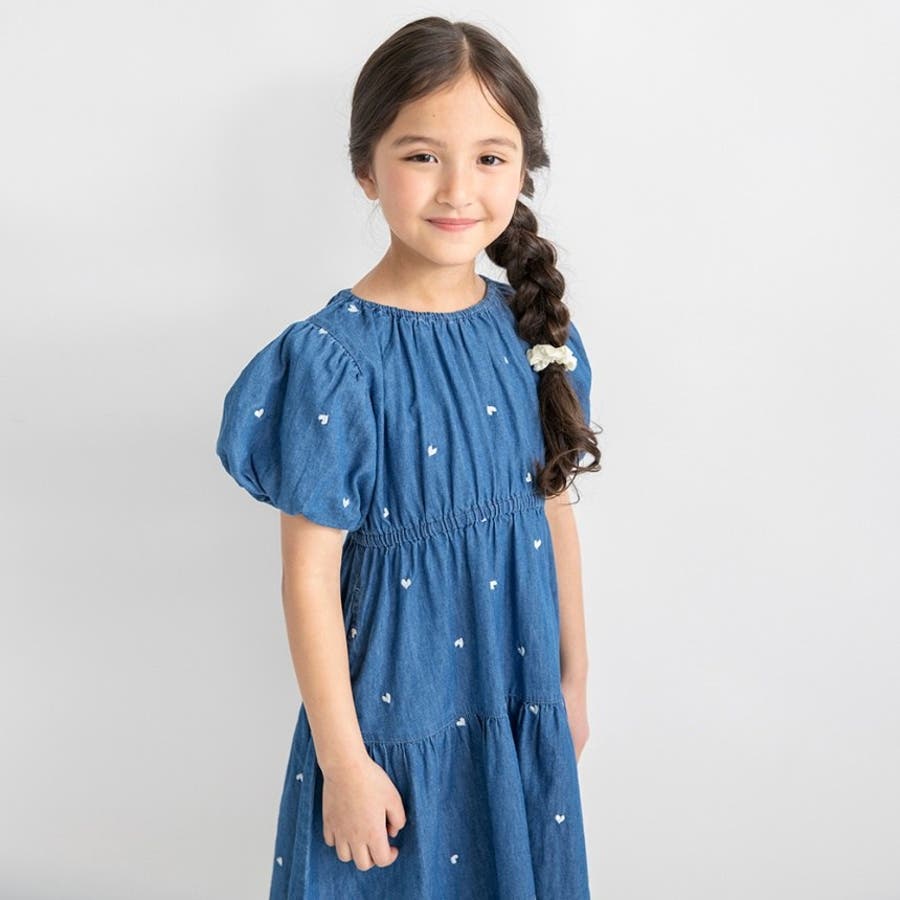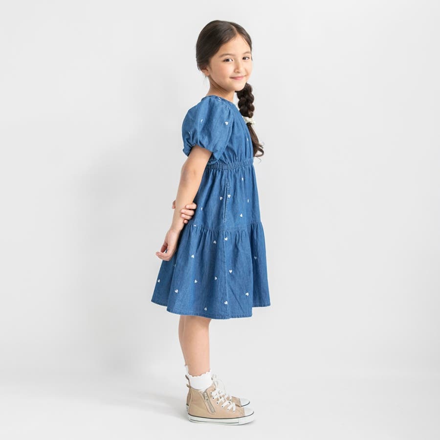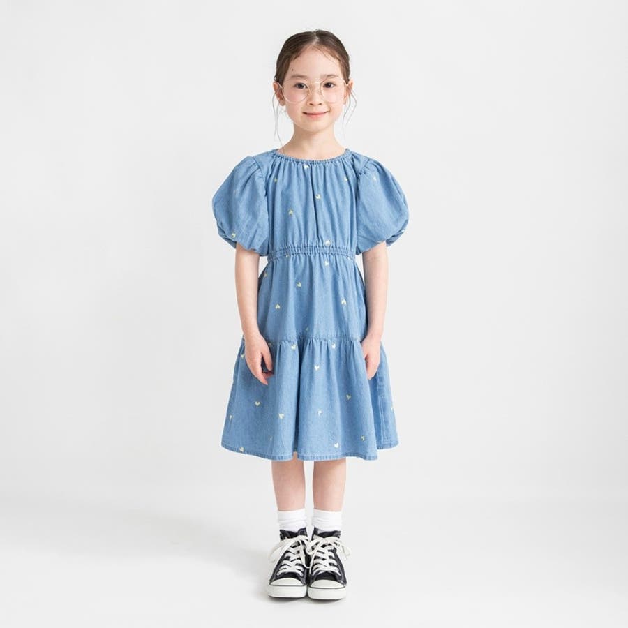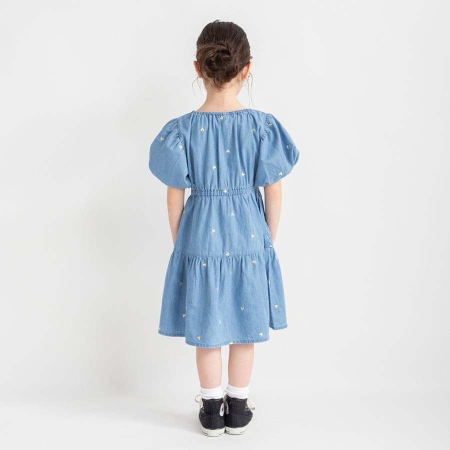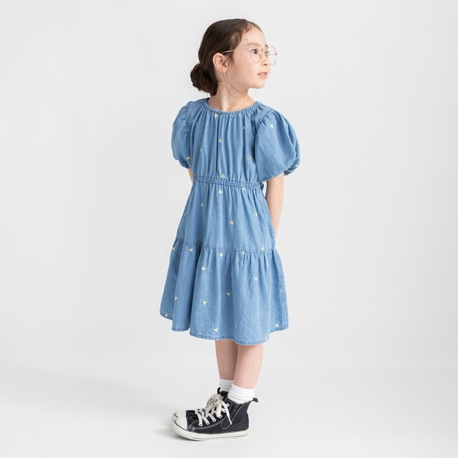 【おそろい】ハート刺しゅうデニムワンピース