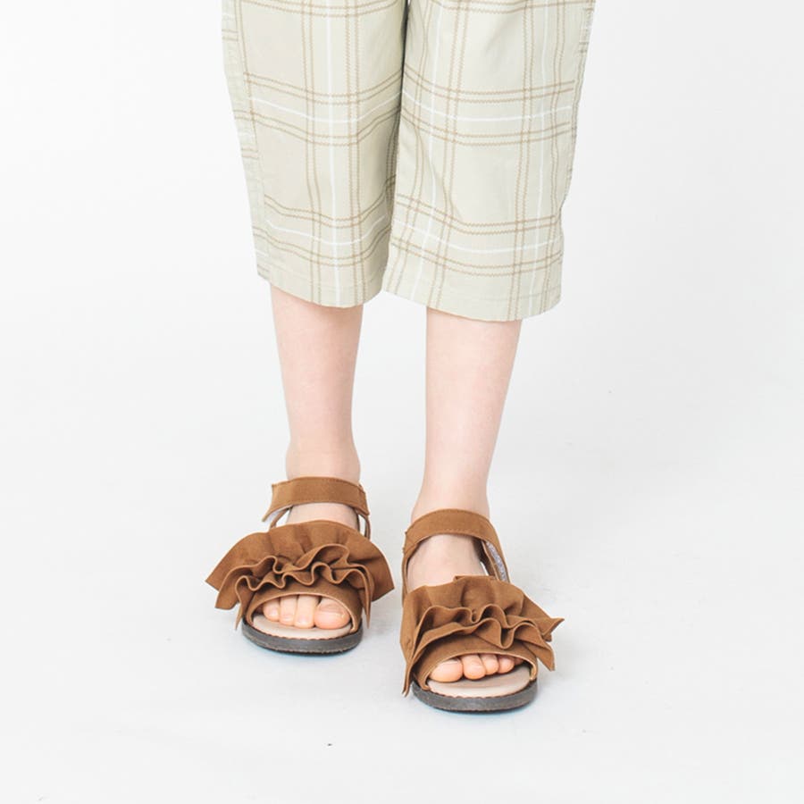 足の甲をしっかりとカバーする安定感のあるデザイン、簡単に脱ぎ履きできるマジックテープ仕様のベルト、足が疲れにくいクッション性のあるインソールなど、お子さまの履きやすさも兼ね備えたサンダルです。