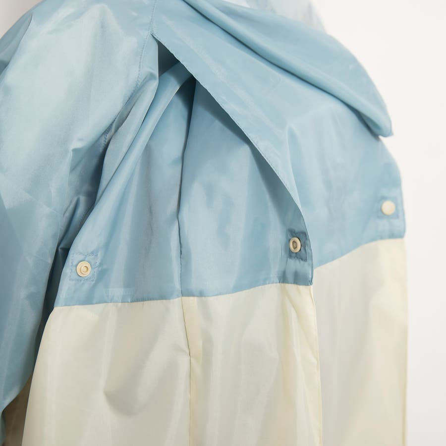 | 素材 | 本体:ポリエステル100% はっ水(水をはじきやすい) フード透明部分:ポリ塩化ビニル |