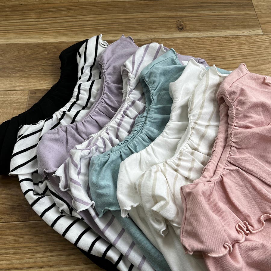 投稿日:2024.10.15105センチの娘に110のパープルのストライプを購入。360度存在感のあるフリルがあり生地も柔らかくてとても気に入りました!