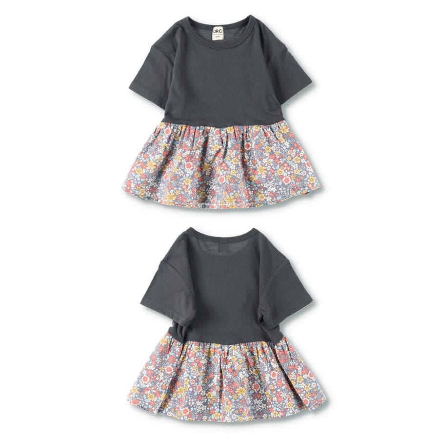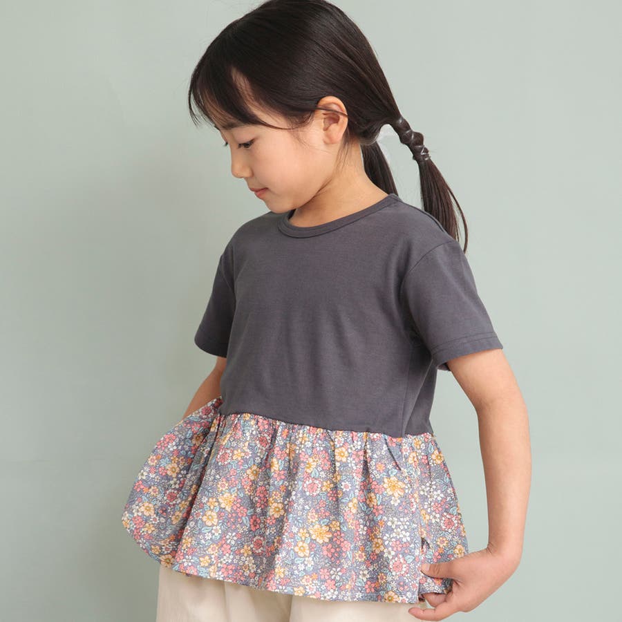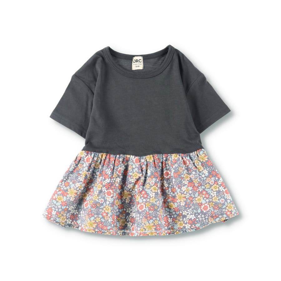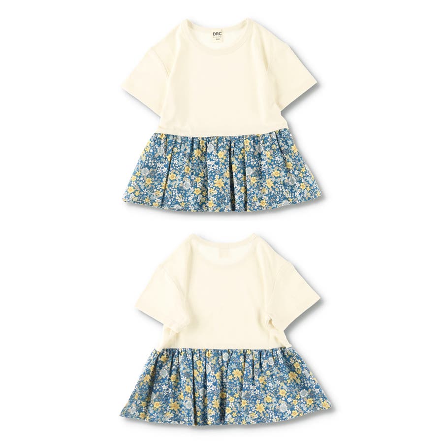 【WEB限定/DRC/やわらか天竺】柄フリル切替半袖Tシャツ
