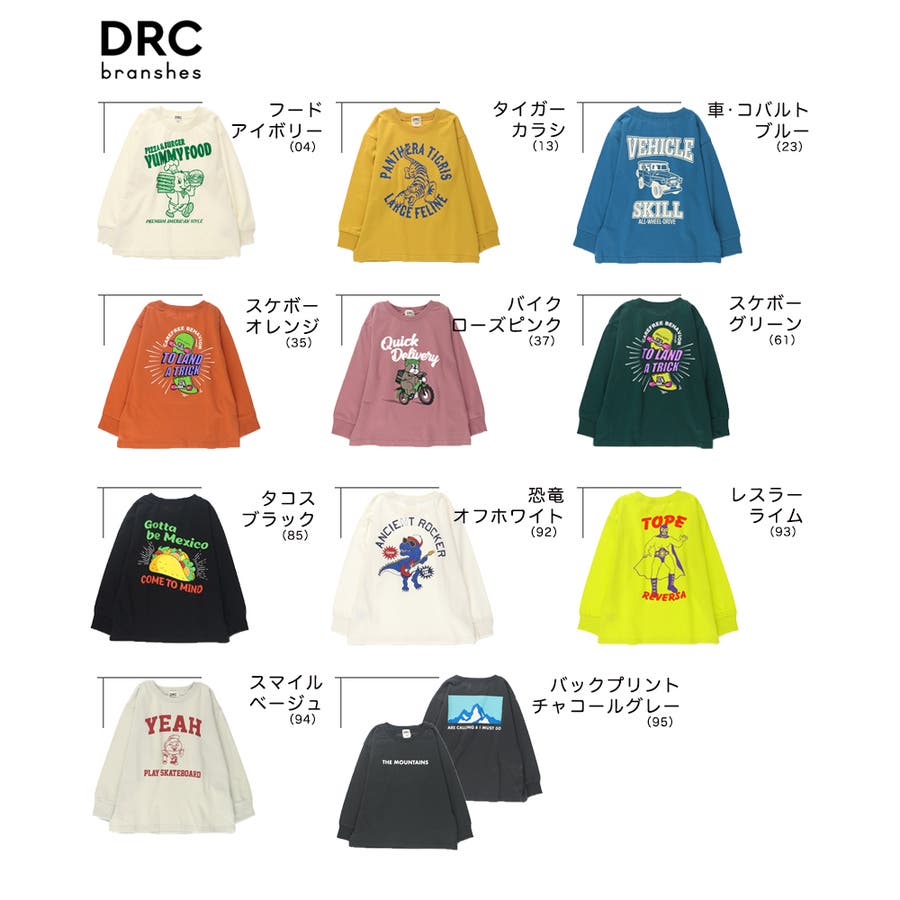 | カラー | フード・アイボリー / タイガー・カラシ / 車・コバルトブルー / スケボー・オレンジ / バイク・ローズピンク / スケボー・グリーン / タコス・ブラック / 恐竜・オフホワイト / レスラー・ライム / スマイル・ベージュ / バックプリント・チャコールグレー |