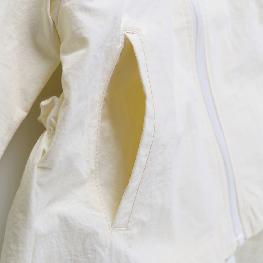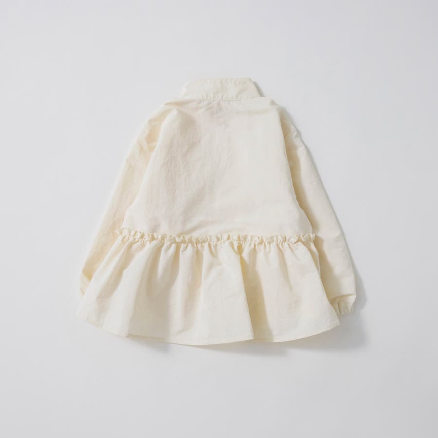 ふわっと裾にかけて広がったAラインシルエットと後ろフリルが可愛いナイロンジャケット