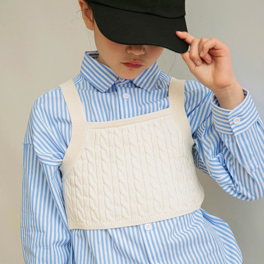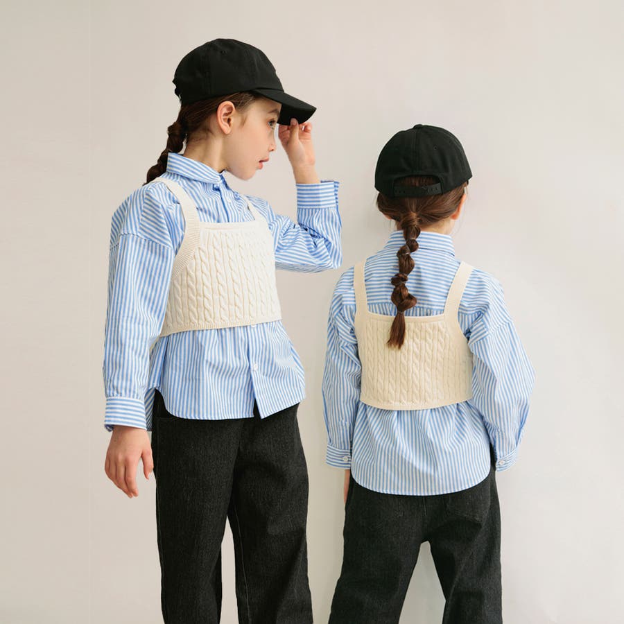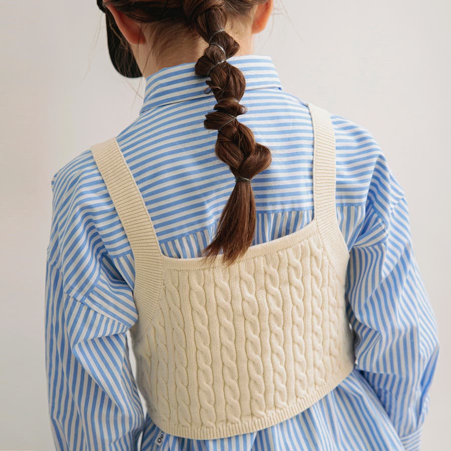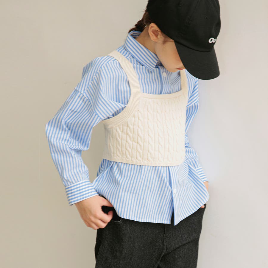 トップスは17ー4108-015のストライプシャツがおすすめのニットビスチェです。