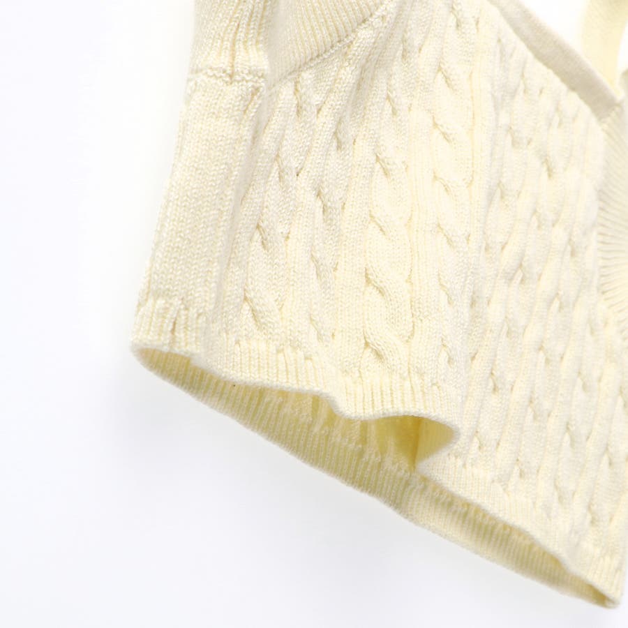 ケーブル編みだから上品なカジュアル感での着こなしがおすすめです。