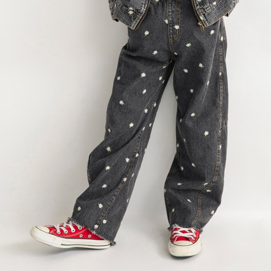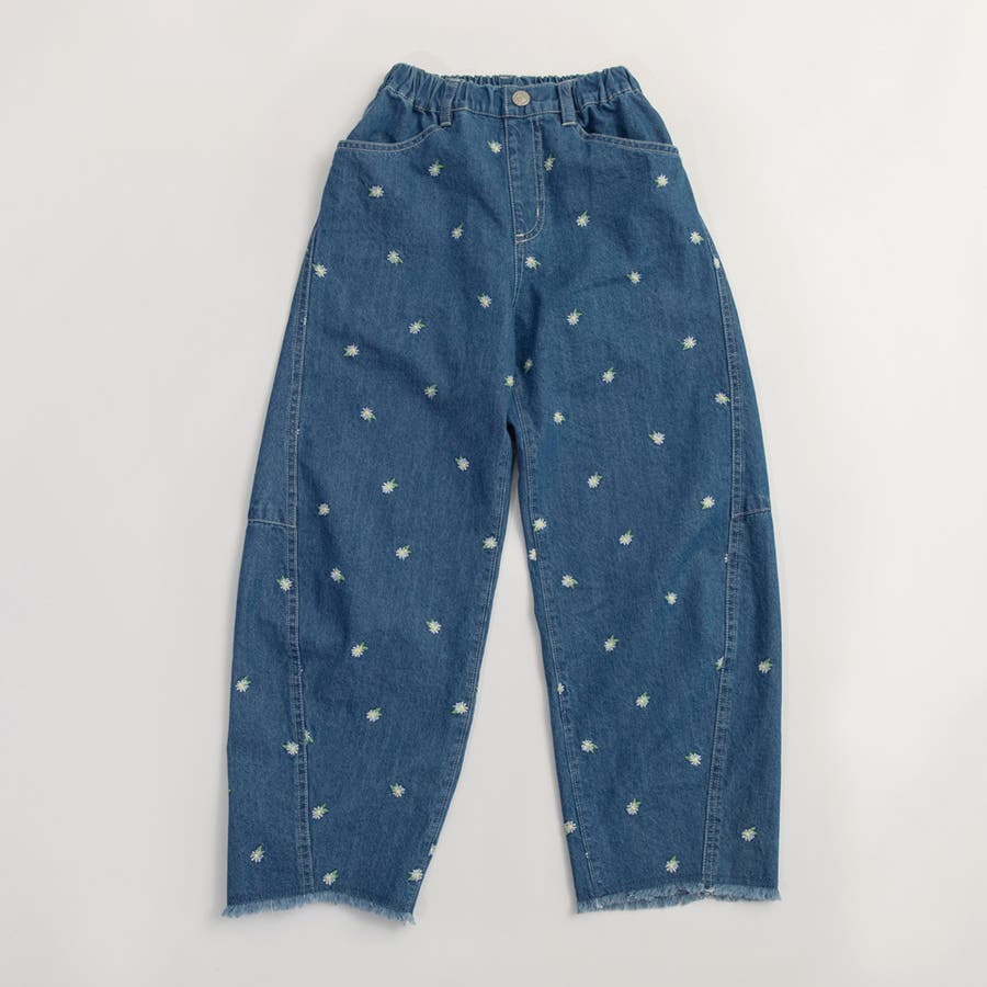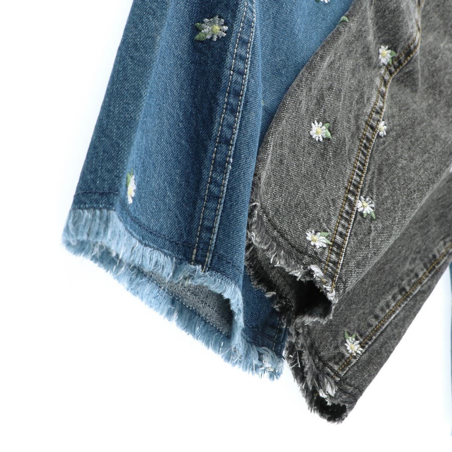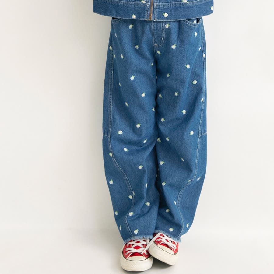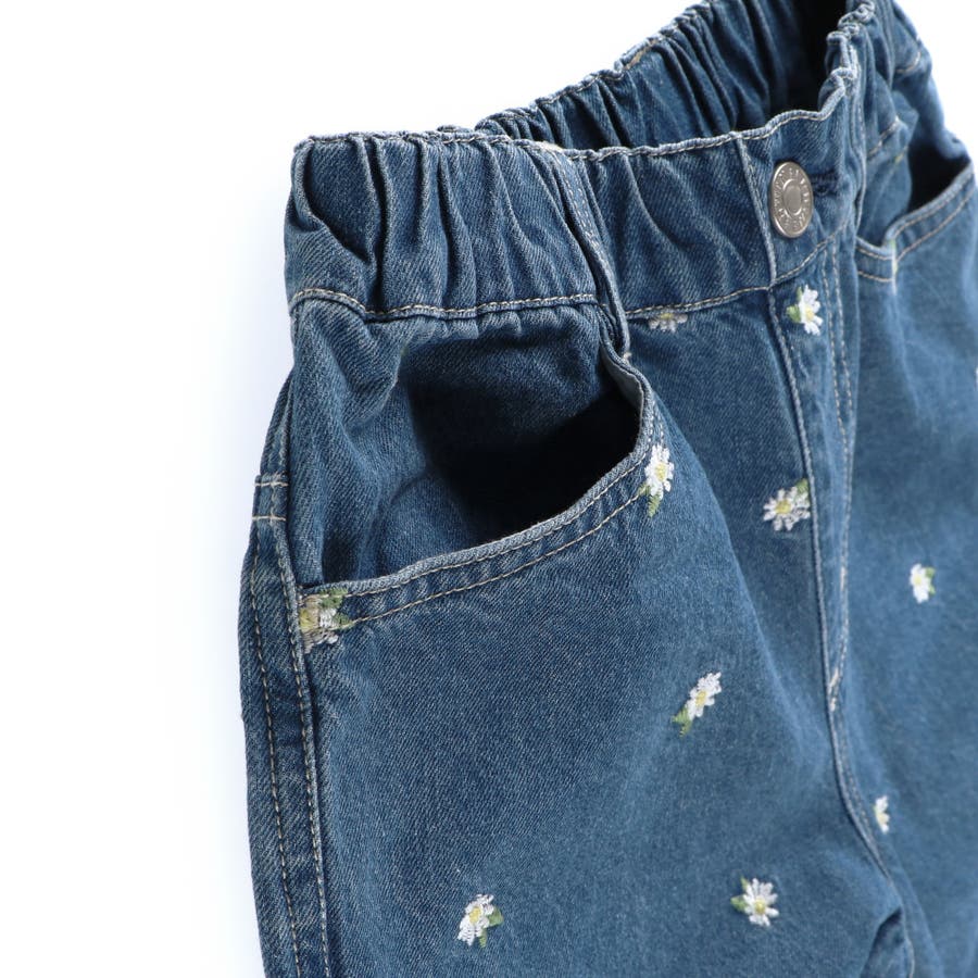 デニムに映える繊細なお花刺しゅうが上品なアクセントに
