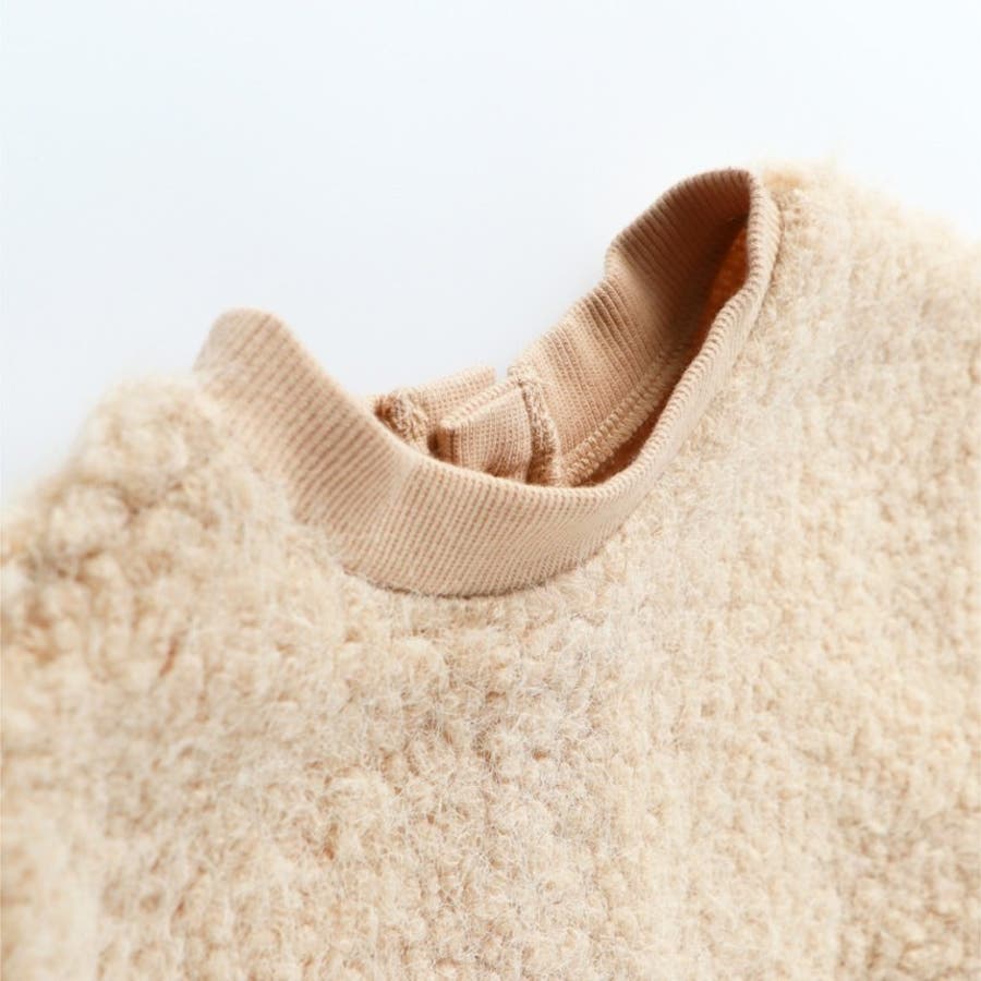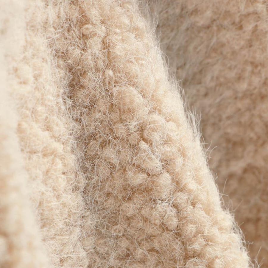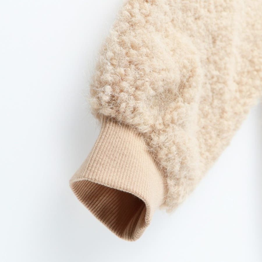 毛足のあるふんわりした素材感で見た目にもあたたかく、1枚でしっかり映えるデザイン