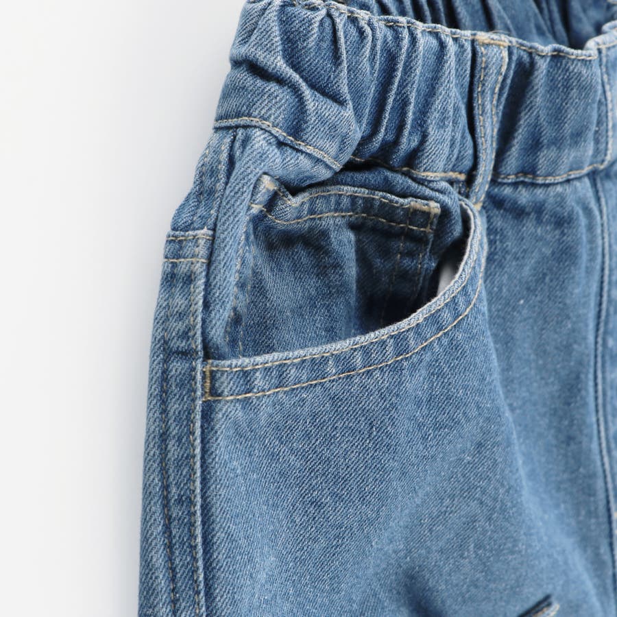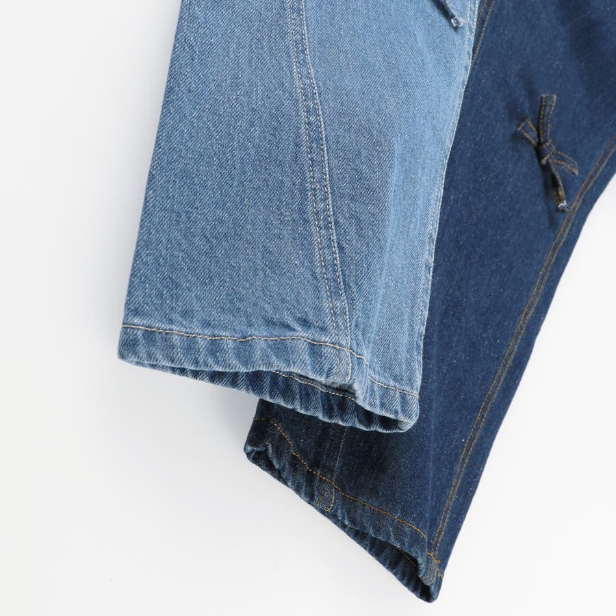 程よい厚みの9オンスデニムで、立体リボンがデザインの