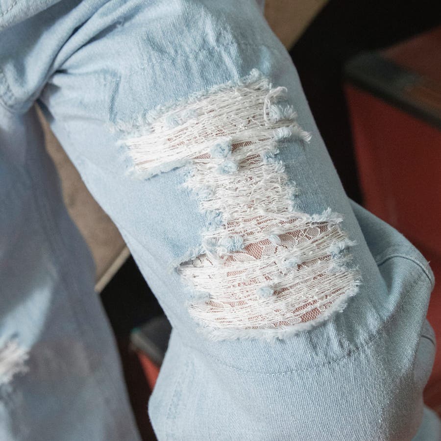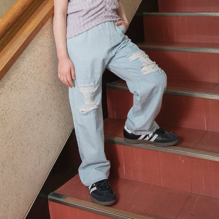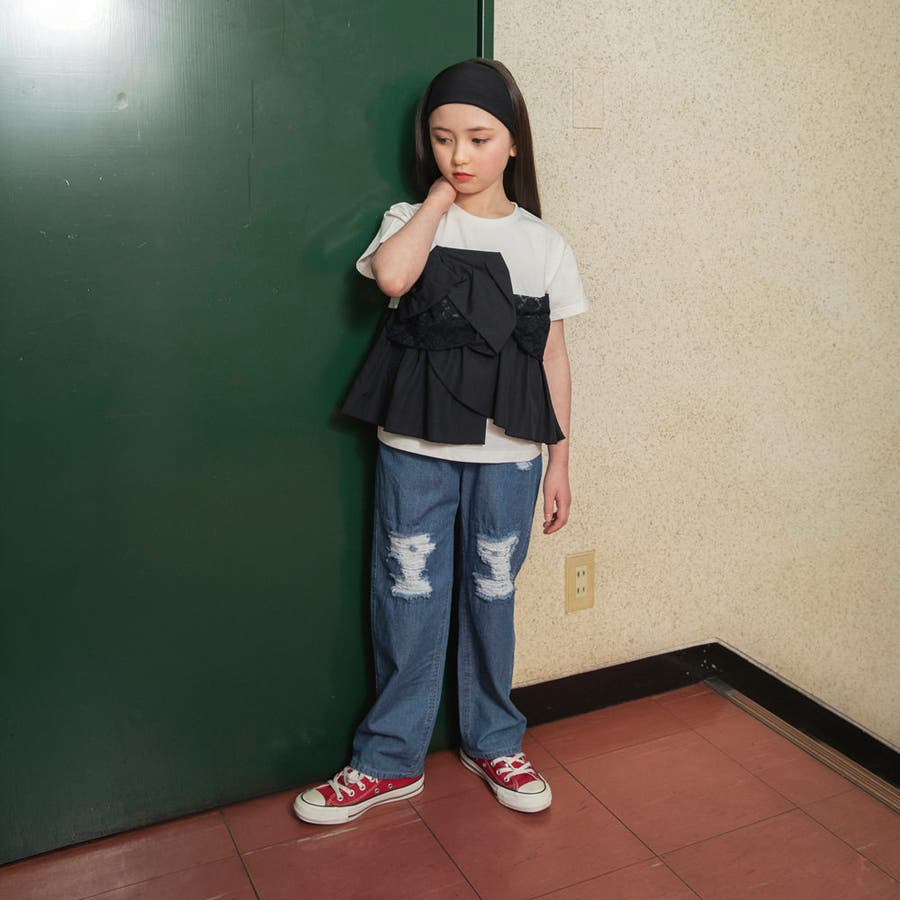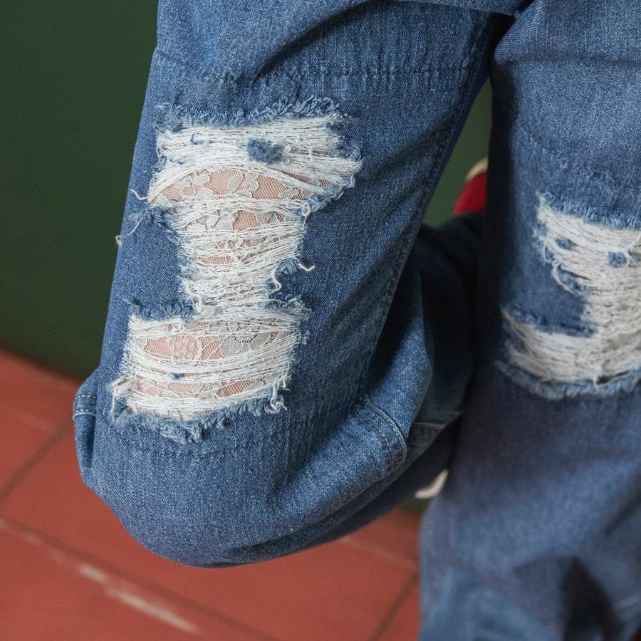 【Ou? by EDWIN】クラッシュレースデニムパンツ