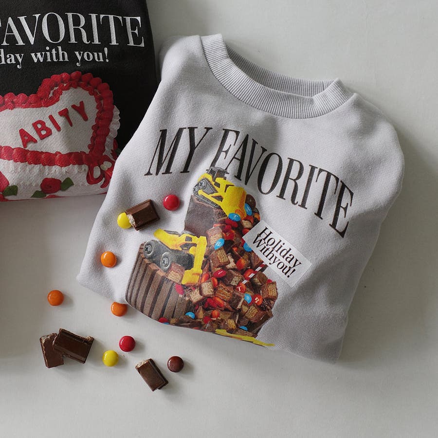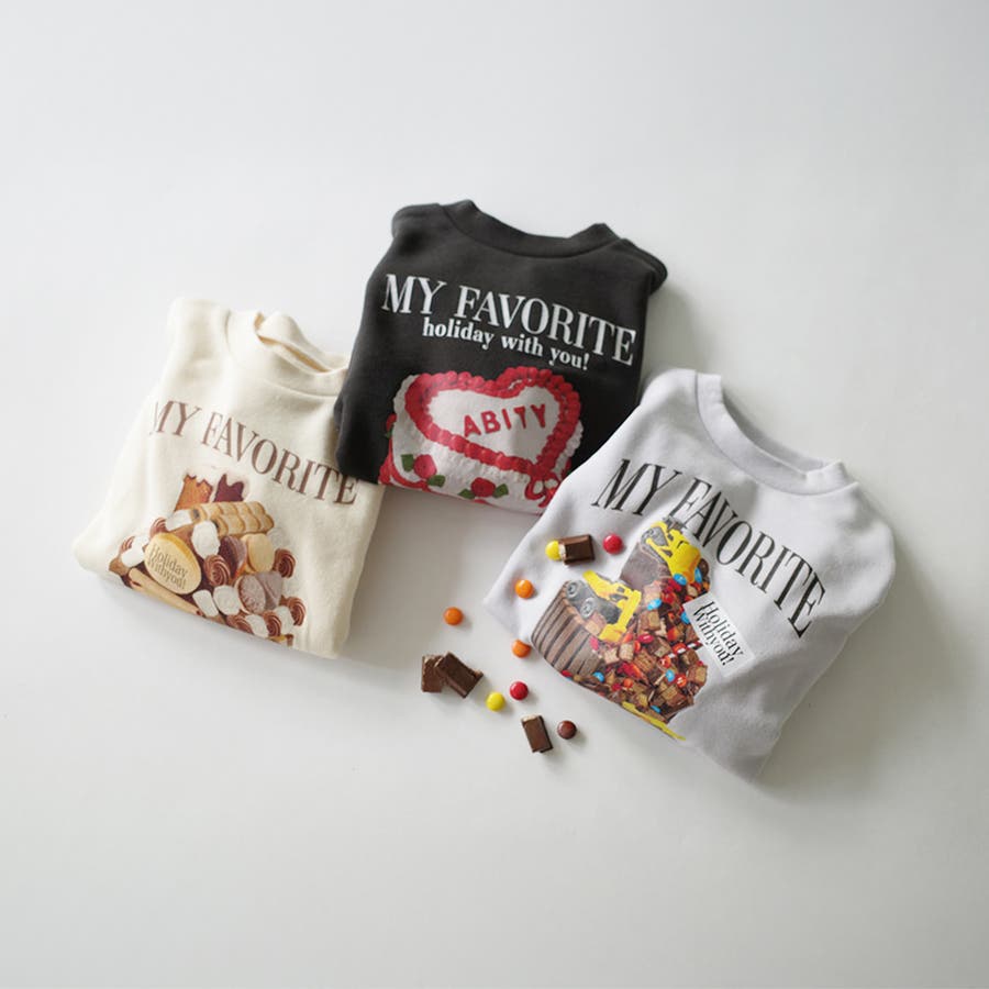 美味しそうなスイーツモチーフがポイントの裏毛トレーナー
