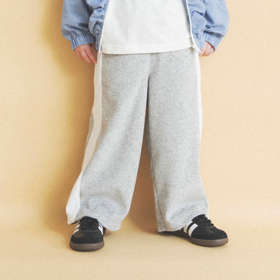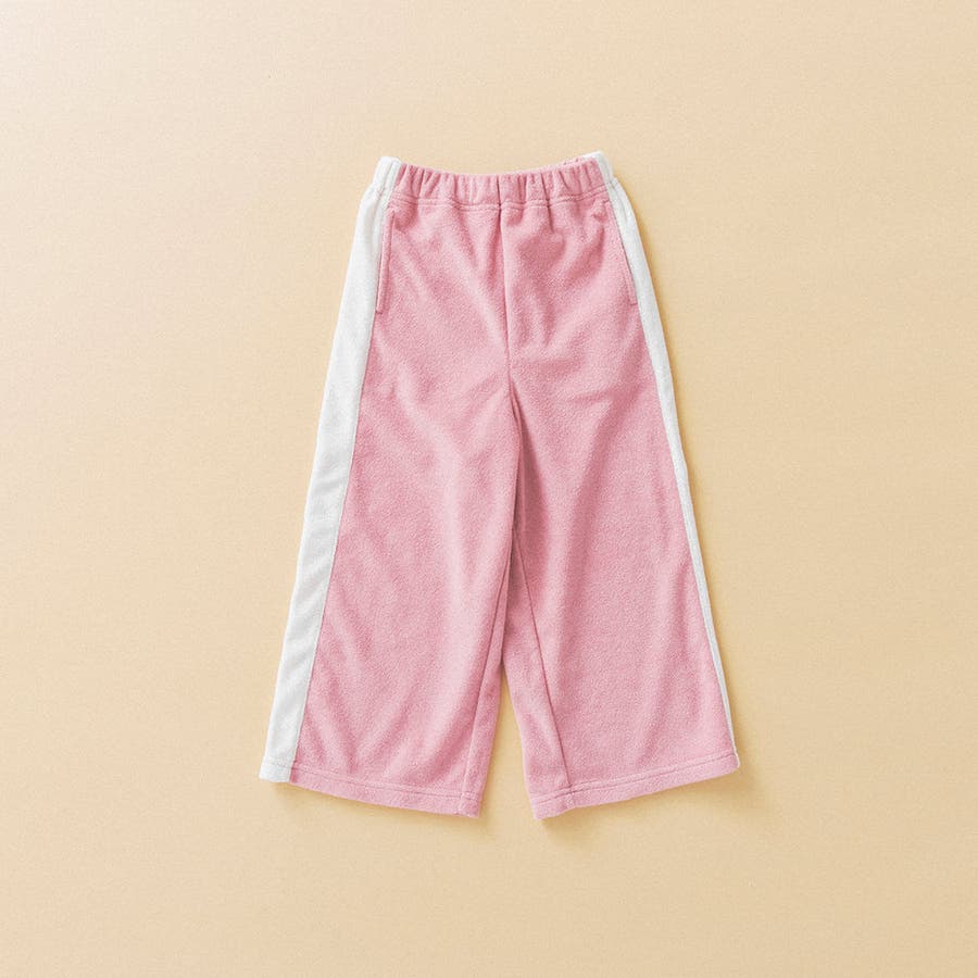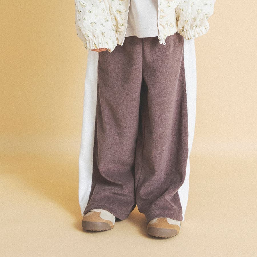 サイドの広めライン切替がアクセントのロングパンツはしっかりとした厚みのパイル生地を使用しておりシーズンレスに使えるアイテム