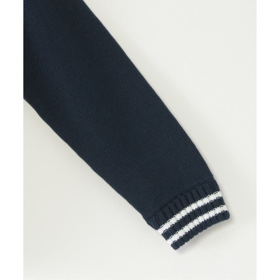 フォーマルシーンもこなすきちんとデザインながら、前開きボタンで気軽に着脱できるカーディガン仕様。