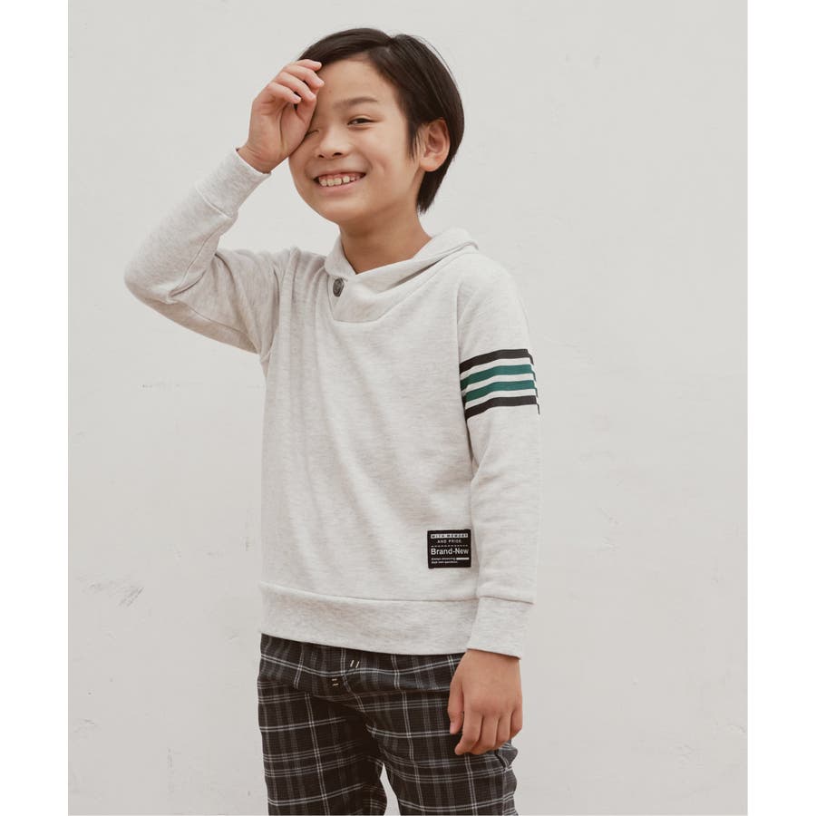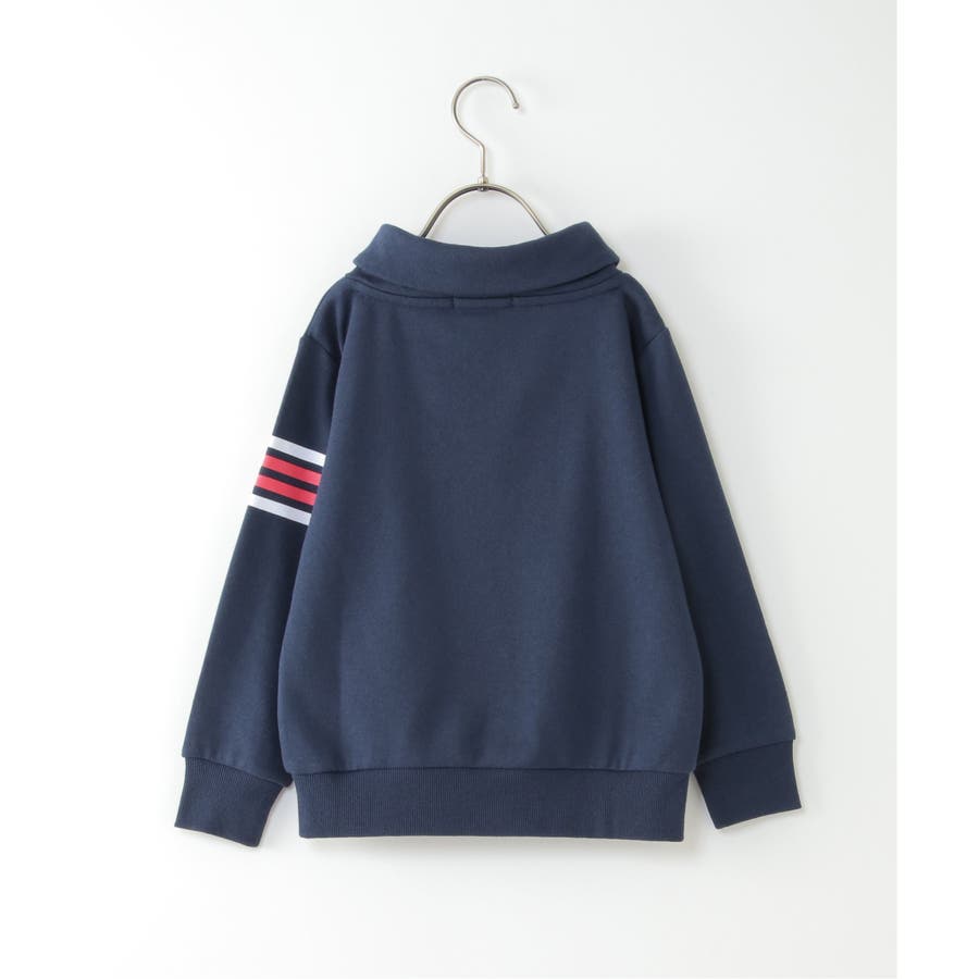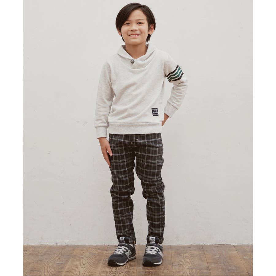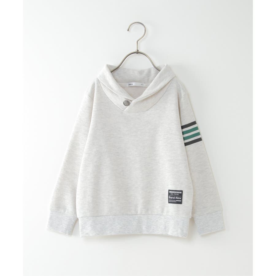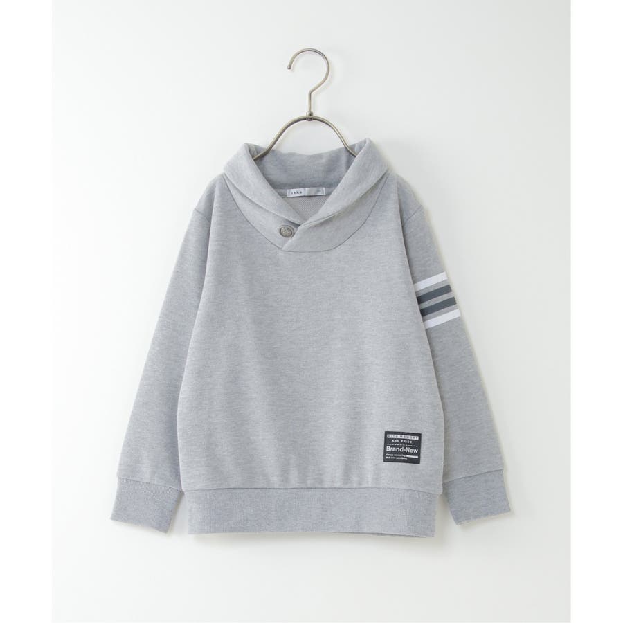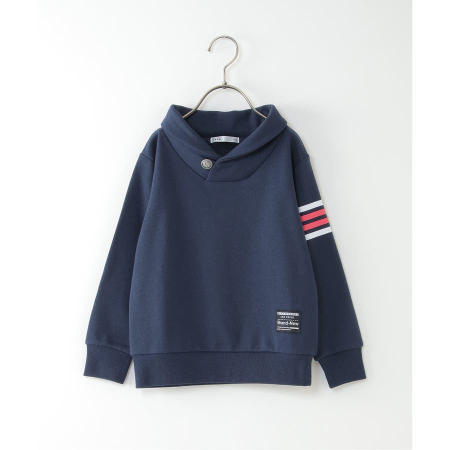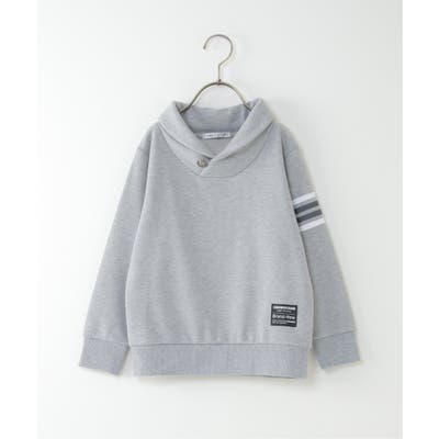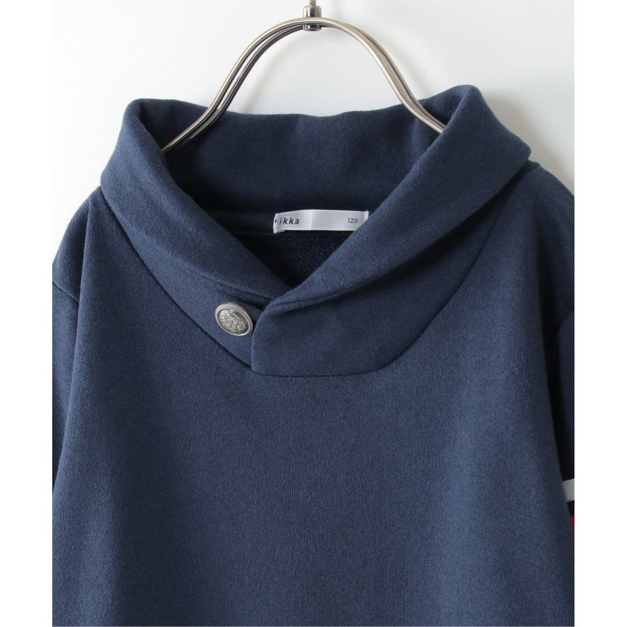 ボリュームのあるショールカラーと、首元のコンチョボタンがポイントのトレーナーです。