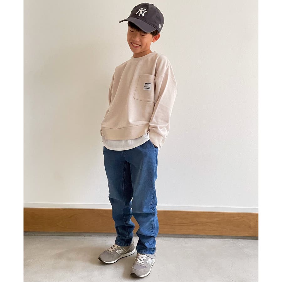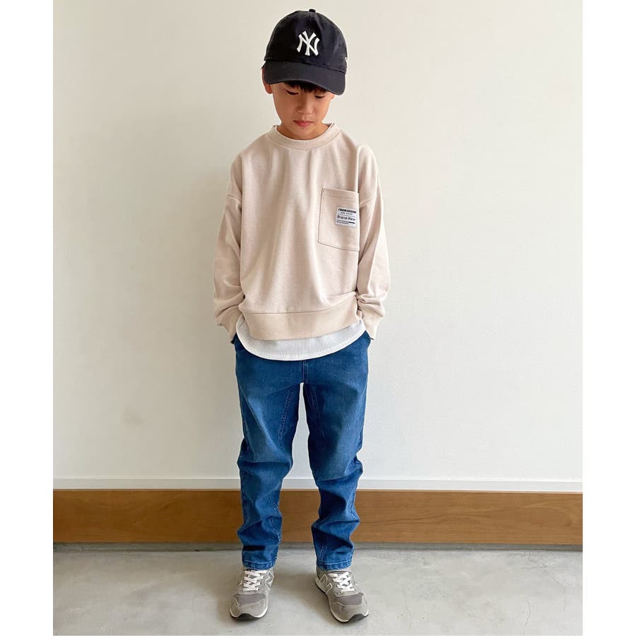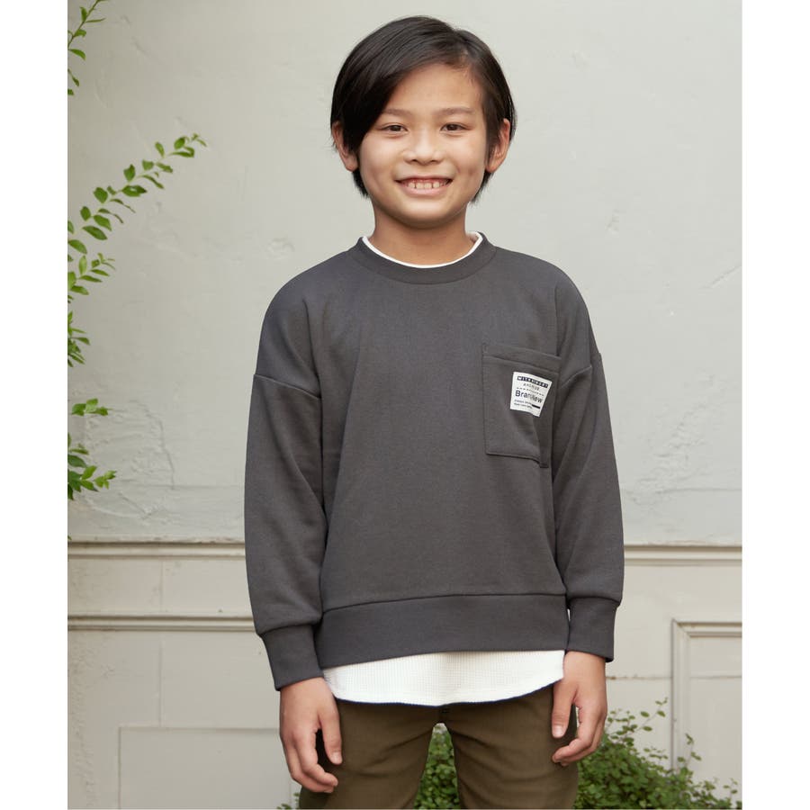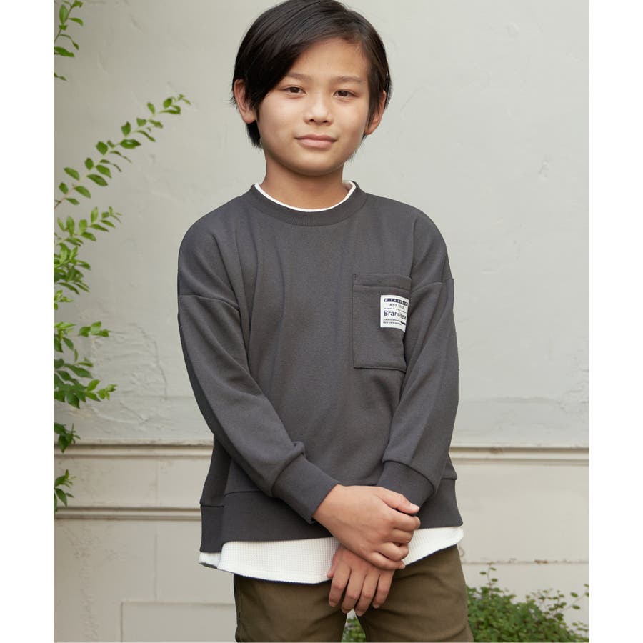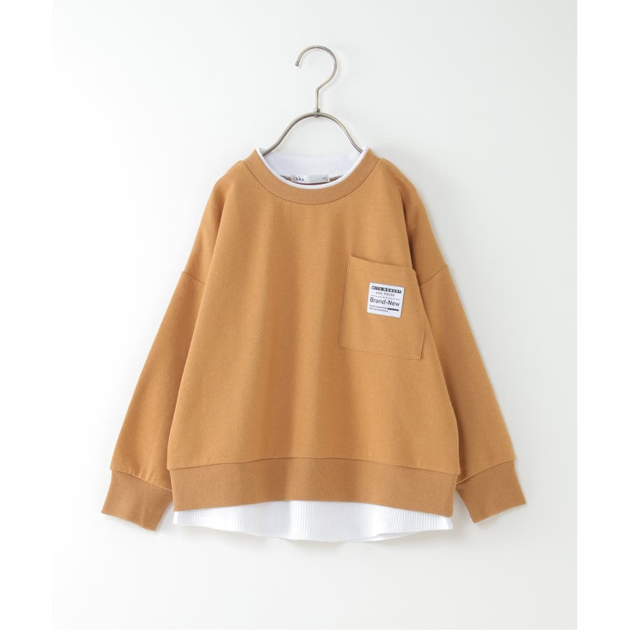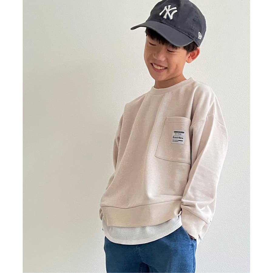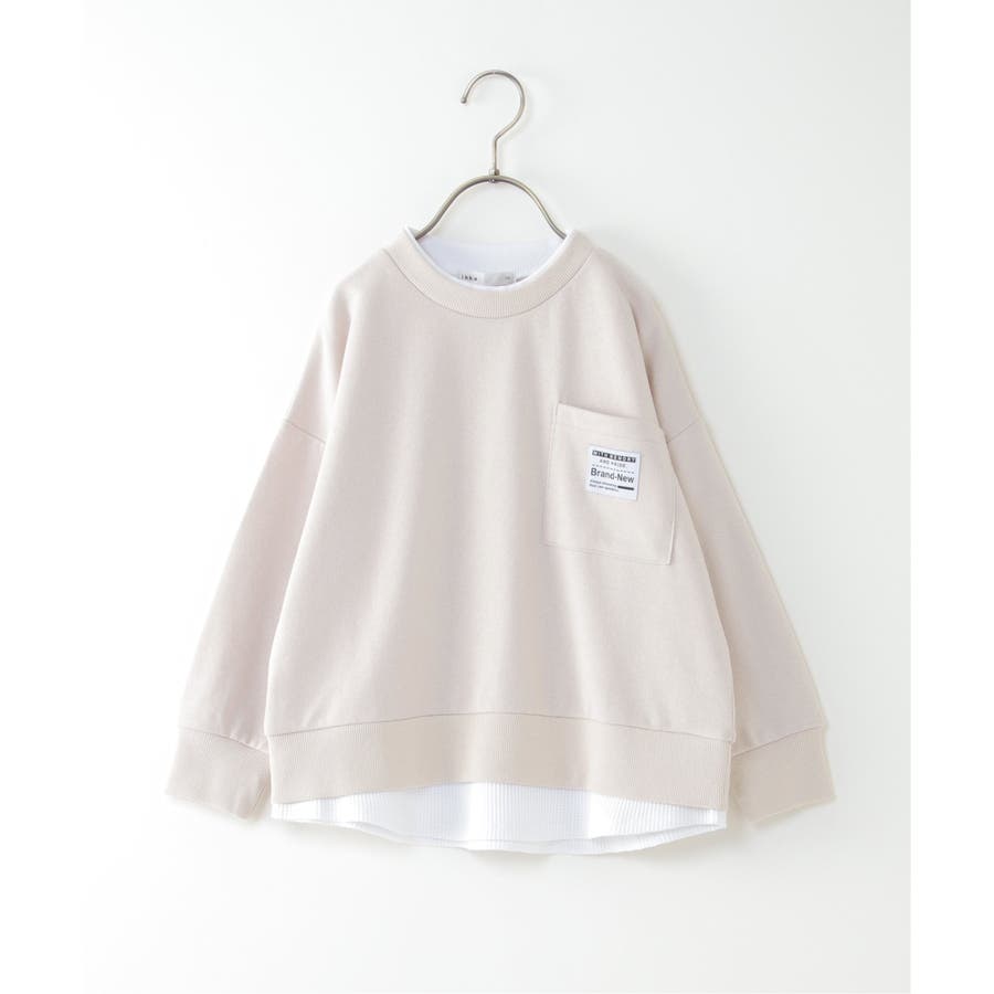 【ベージュ】【キッズ】ポケ付き裾レイヤードトレーナー(100~160cm)