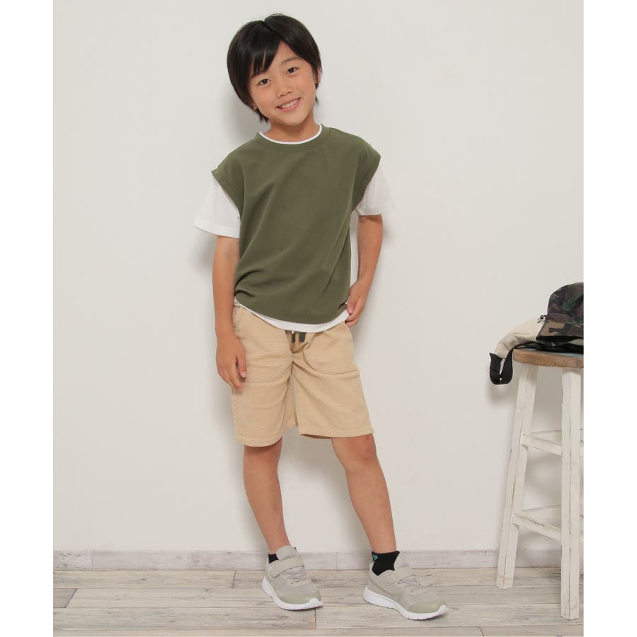 【接触冷感 吸水速乾】フェイクベストレイヤーTシャツ(120~160cm)【親子…