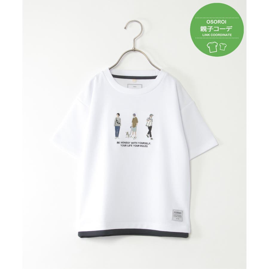 【親子コーデ】裾レイヤー刺繍Tシャツ(120~160cm)