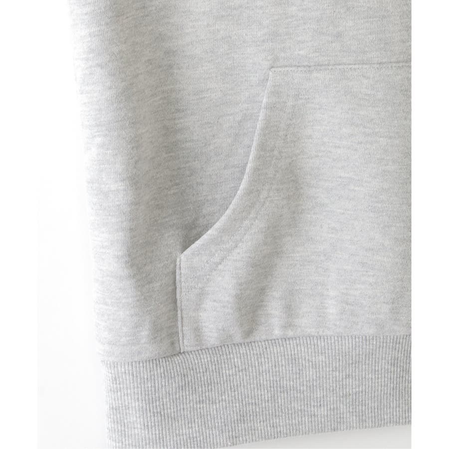 袖のロゴとカンガルーポケットがアクセントです。