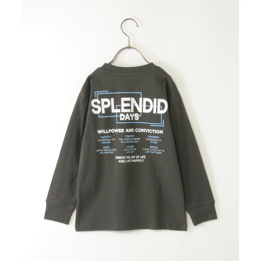 フロントはワンポイントのロゴ刺繍、後ろはプリントで仕上げた長袖Tシャツ。