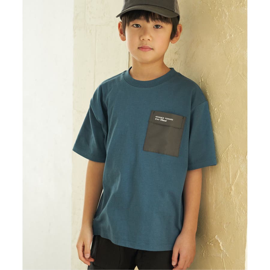 【親子コーデ】異素材ポケロゴプリントT(120~160cm)