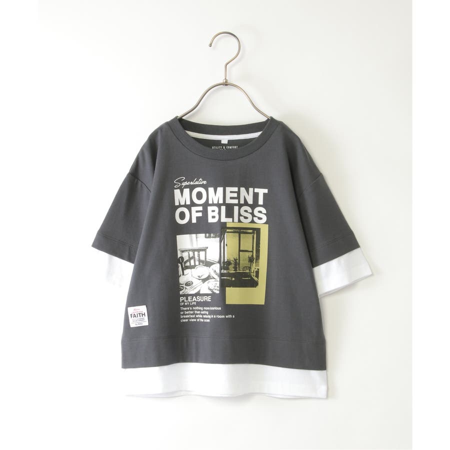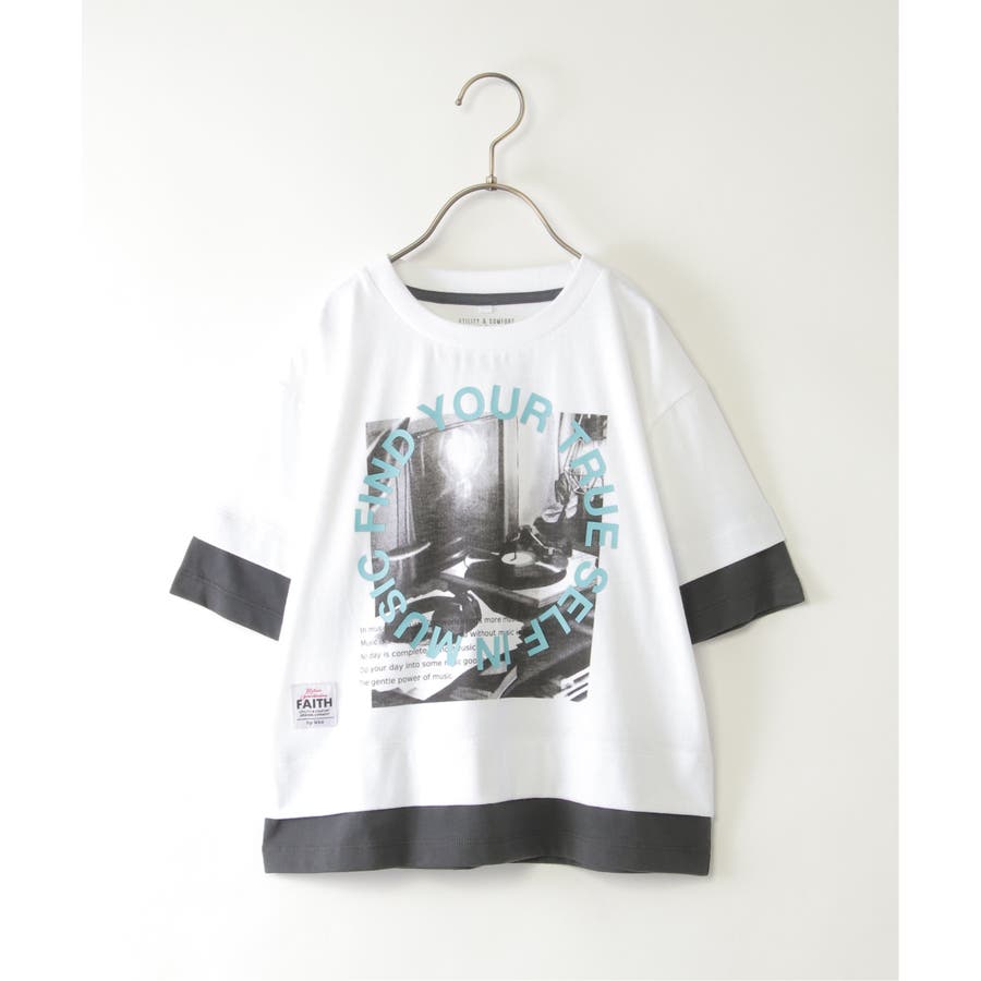 5分袖レイヤーフォトプリントTシャツ(120~160cm)