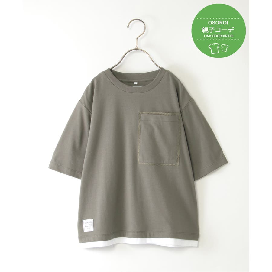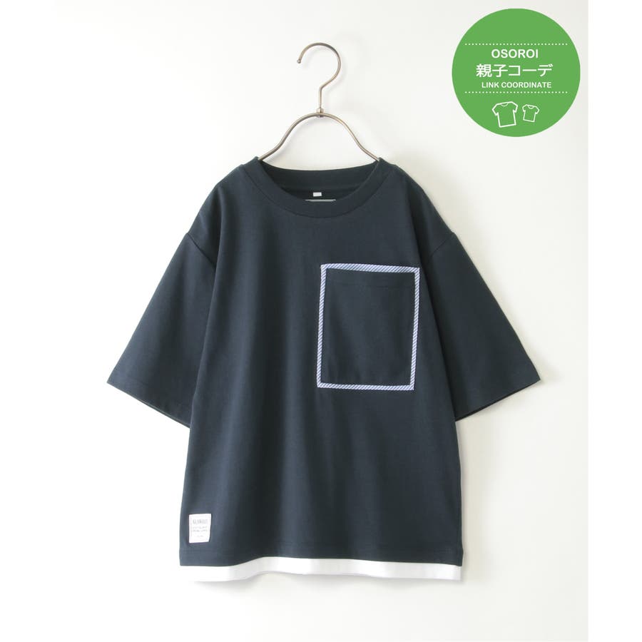 【親子コーデ】ストライプMIXビッグポケTシャツ(120~160cm)