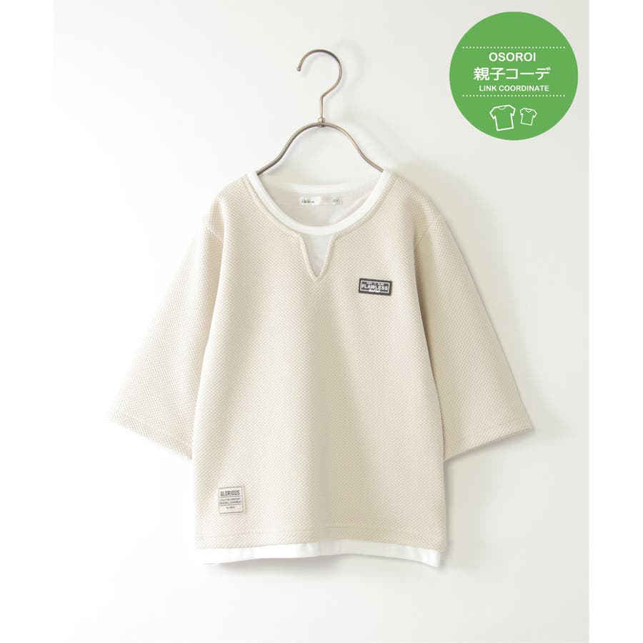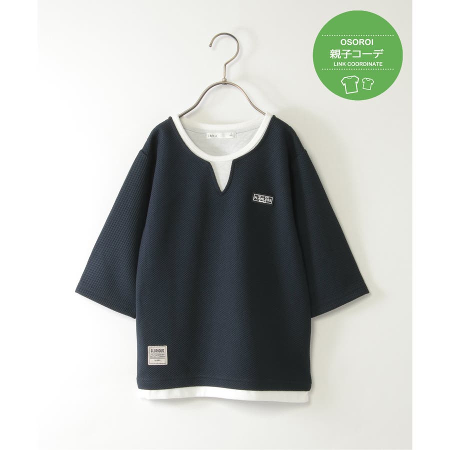 【親子コーデ】キーネックレイヤード7分袖Tシャツ(120~160cm)