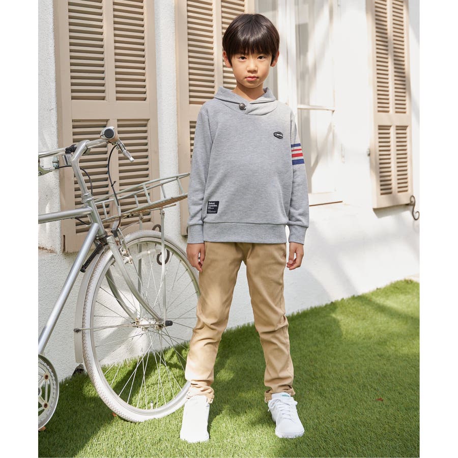ポリエステル混の裏毛素材で、肌ざわりがやさしく動きやすい仕上がり。