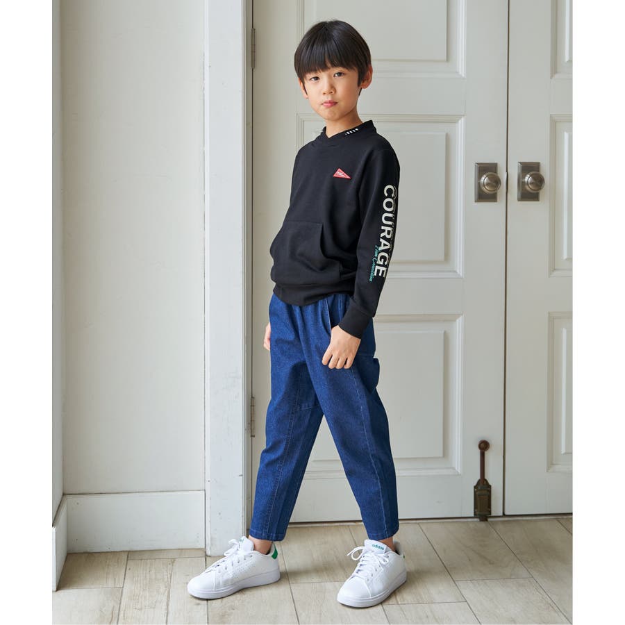 ポリエステル混の裏毛素材で軽く、動きやすく、秋冬のデイリーコーデにぴったり。