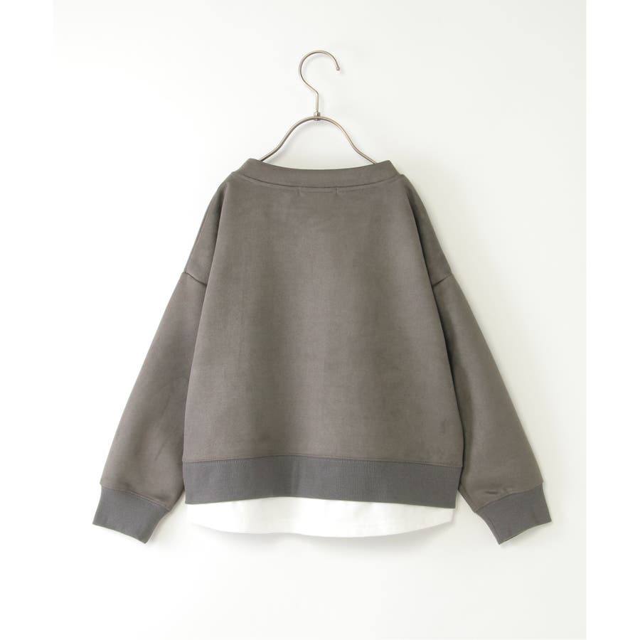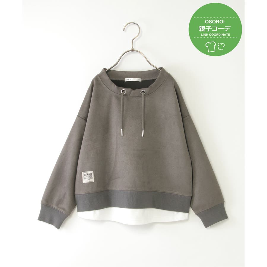 【親子コーデ】フェイクスエードルーイカラーレイヤードプルオーバー(120~160…